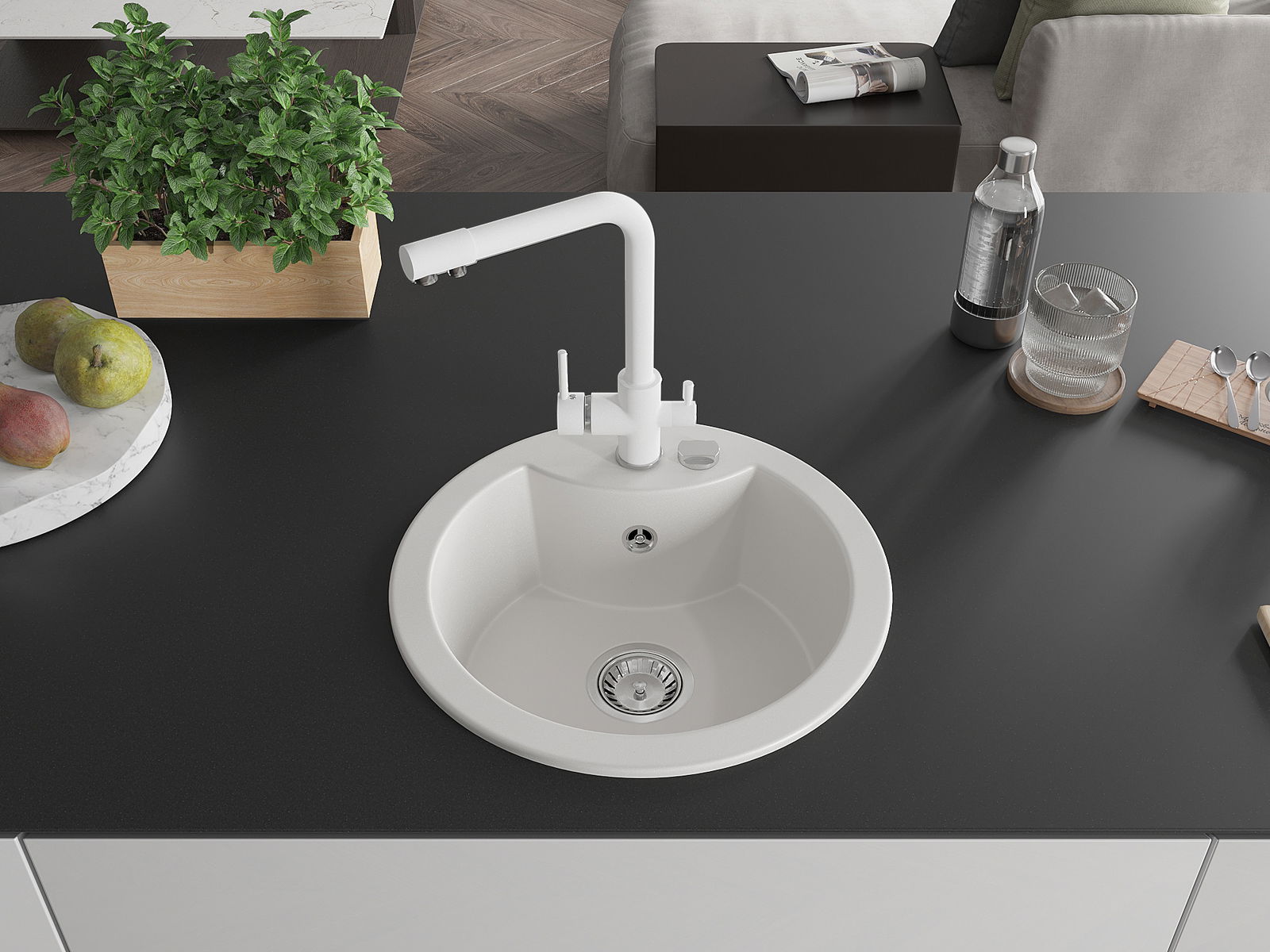 Mexen Diego гранитна мивка 1-камерна със кухненски смесител Duero, бял - 6512-20-671600-20