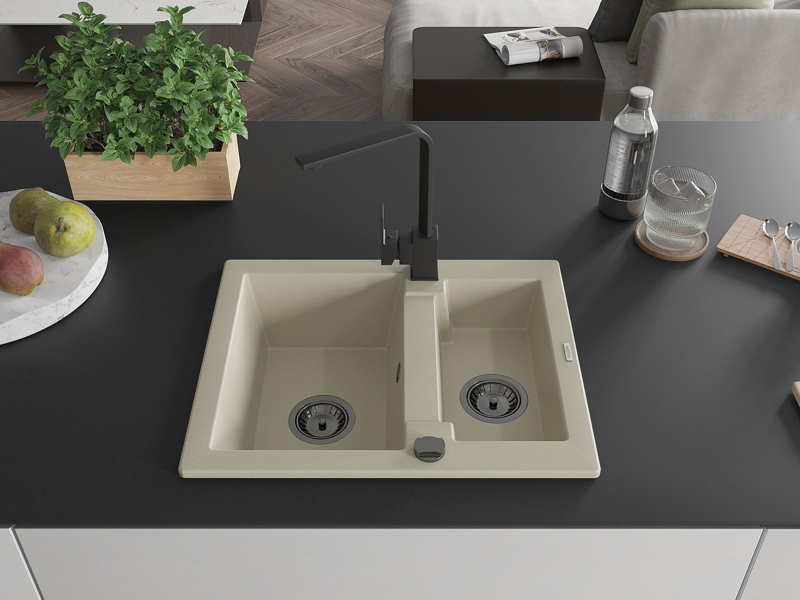 Мивката е направена от висококачествен гранит. Това е елегантно и най -вече практично допълнение към всяка кухня, независимо от нейния стил. Висококачествената и гранитна издръжливост осигуряват много години употреба.