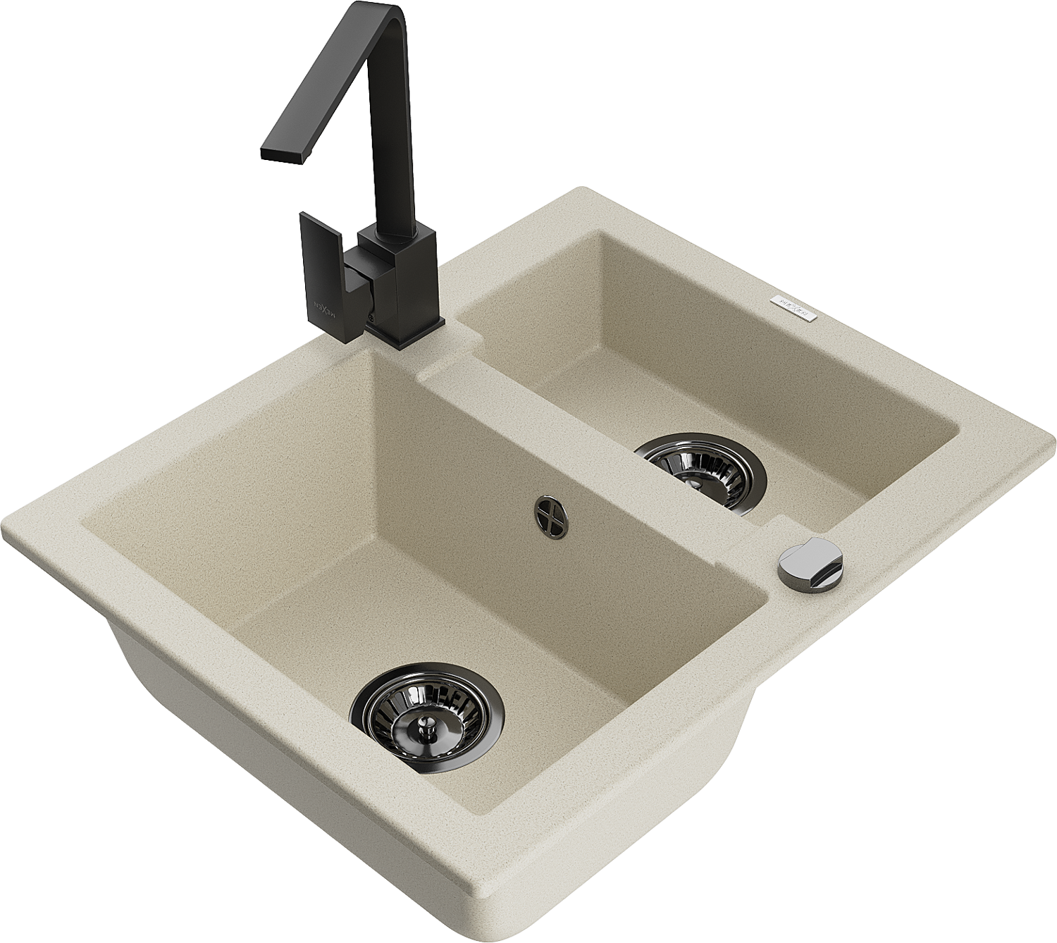 Mexen Carlos гранитна мивка с 1,5 камери и кухненски смесител Rita, бежов - 6518-69-670300-70
