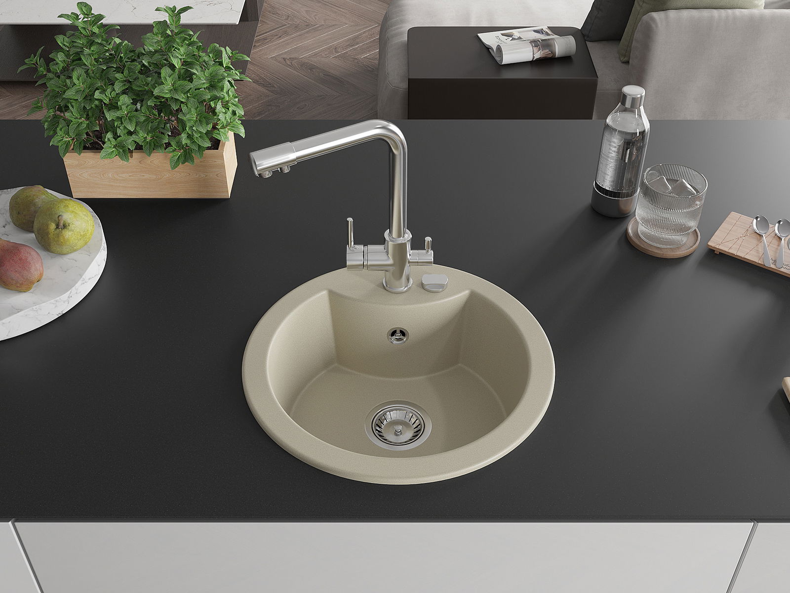 Мивката е направена от висококачествен гранит. Това е елегантно и най -вече практично допълнение към всяка кухня, независимо от нейния стил. Висококачествената и гранитна издръжливост осигуряват много години употреба.