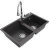 Mexen Tomas гранитна мивка с 2 камери и кухненски смесител Savita, черен - 6516-77-672601-00