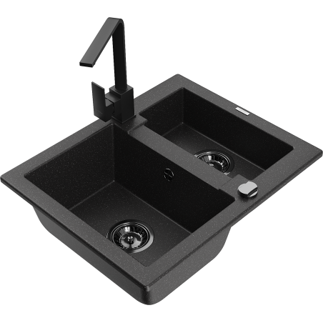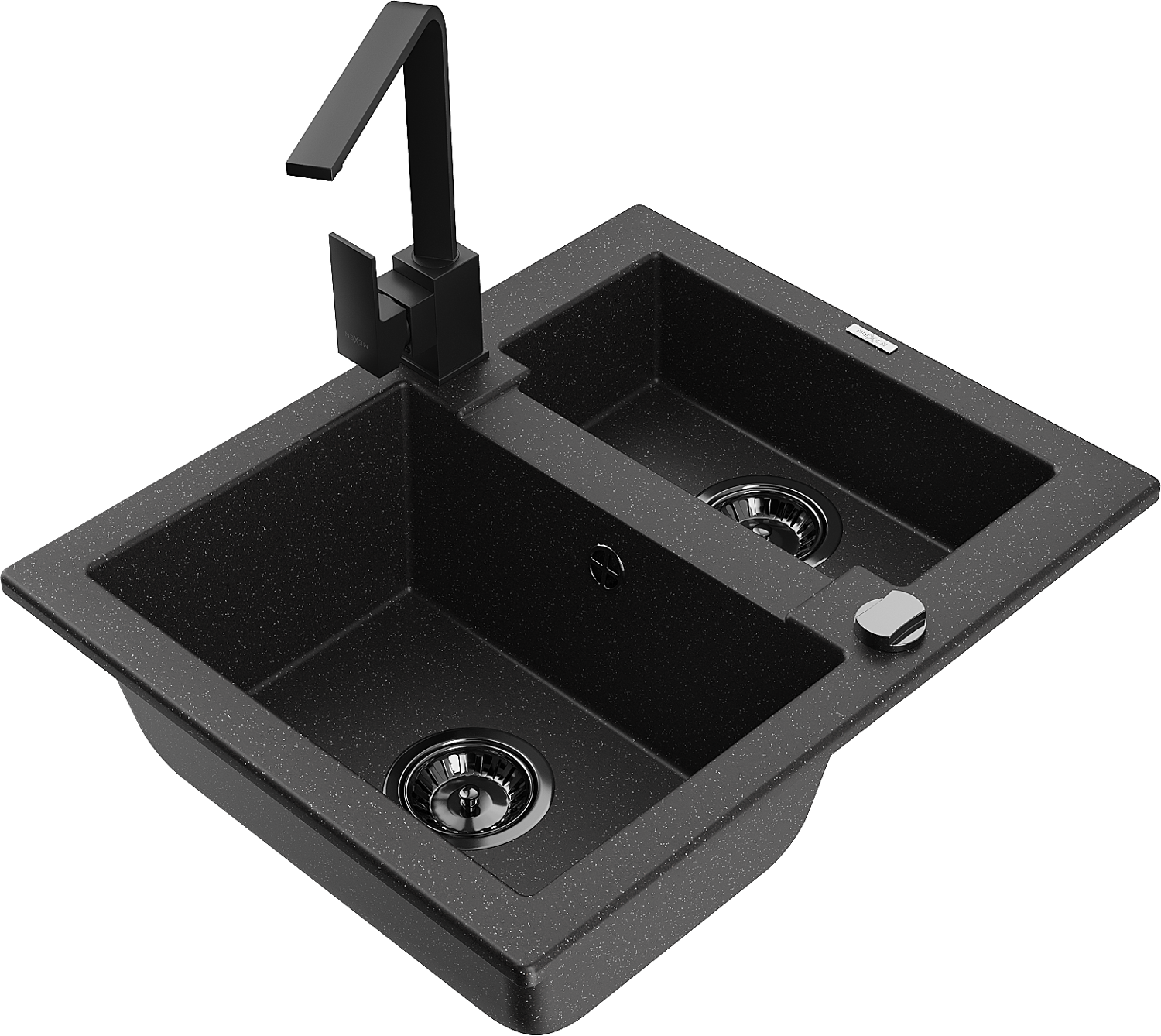 Mexen Carlos гранитна мивка 1,5-камерна с кухненски смесител Rita, черен/сребърен металик - 6518-73-670300-70-B