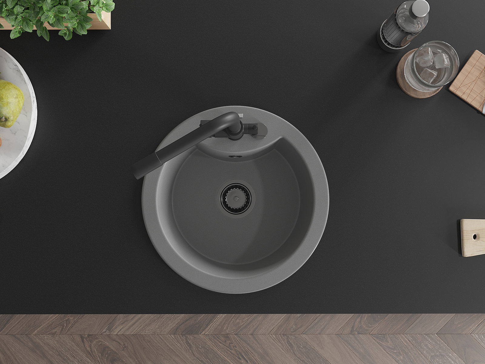 Мивката е направена от висококачествен гранит. Това е елегантно и най -вече практично допълнение към всяка кухня, независимо от нейния стил. Висококачествената и гранитна издръжливост осигуряват много години употреба.