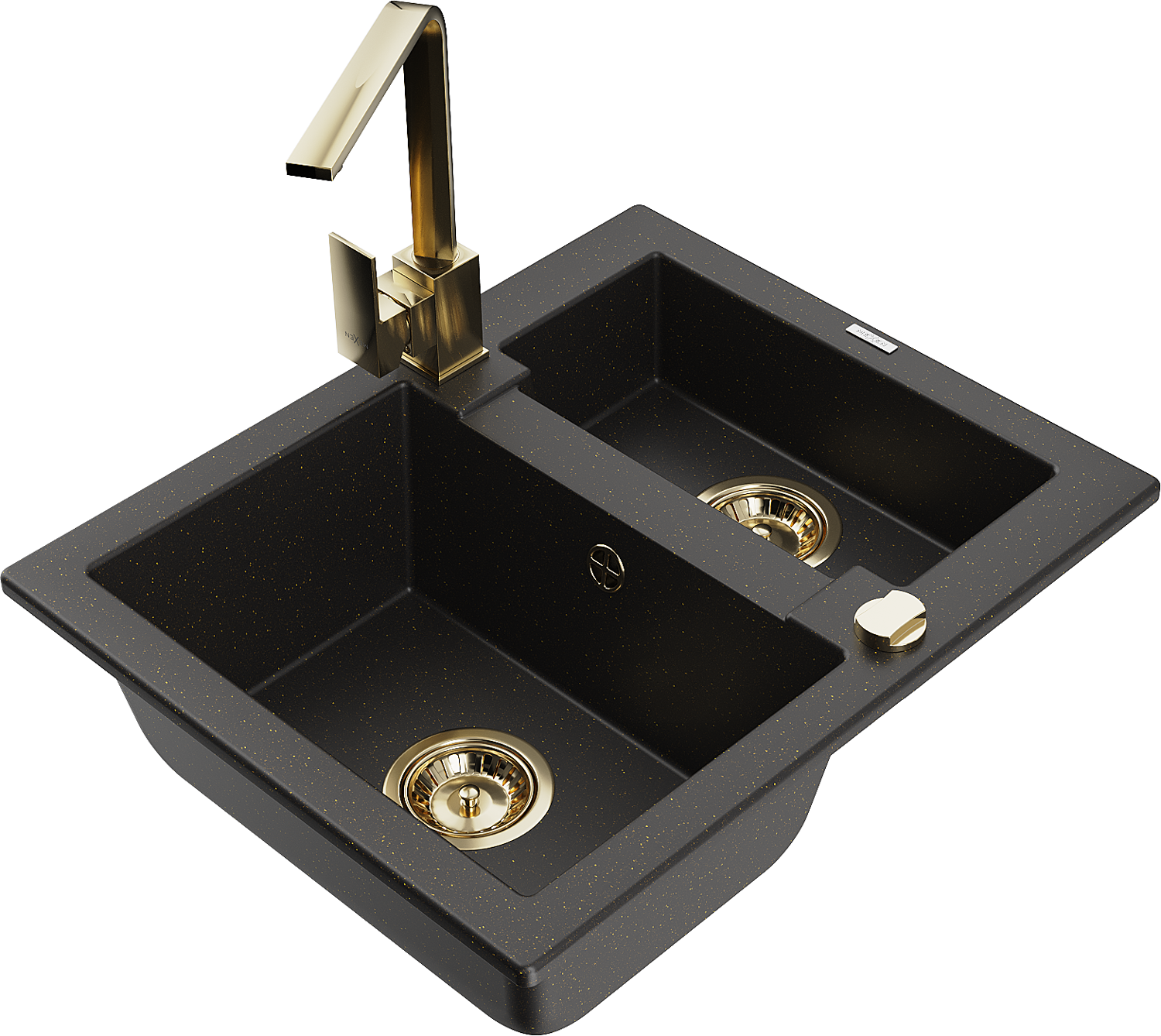 Mexen Carlos гранитна мивка с 1,5 камери с кухненски смесител Rita, черен/златист металик - 6518-75-670300-50