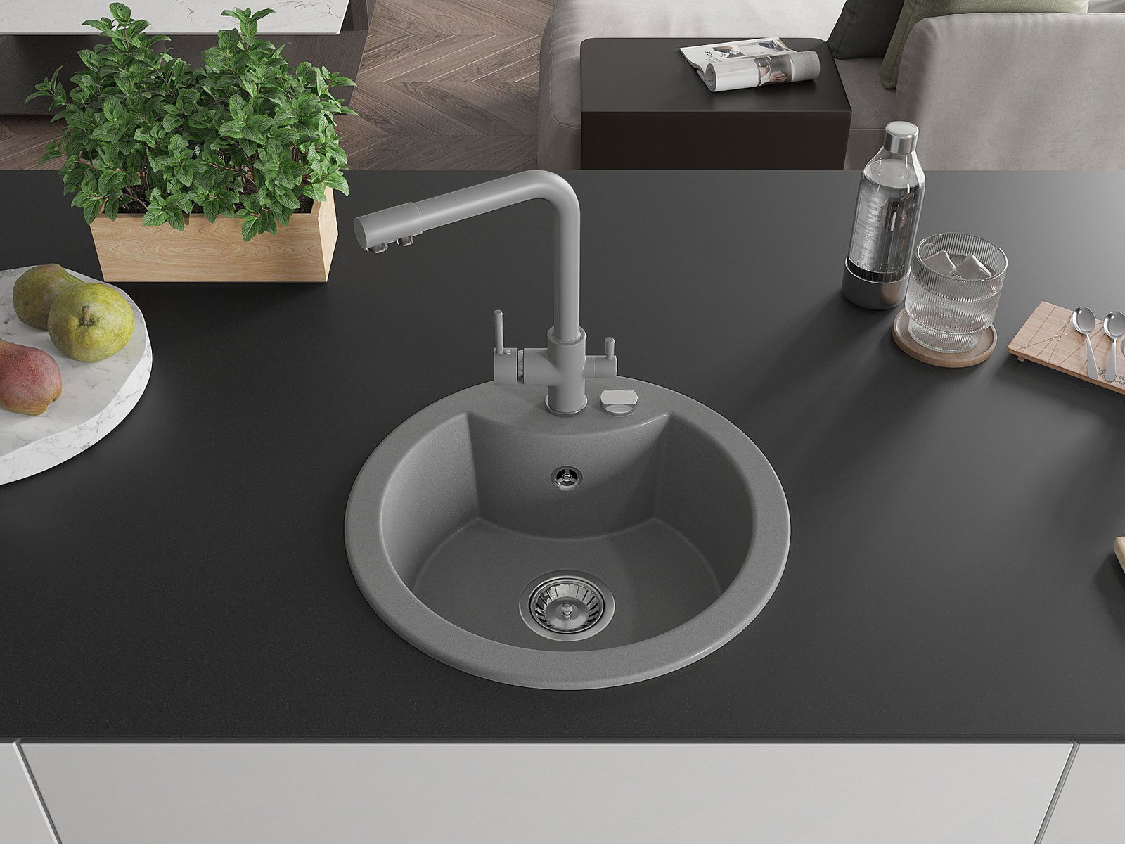 Mexen Diego гранитна мивка с 1 отделение с кухненски смесител Duero, сива