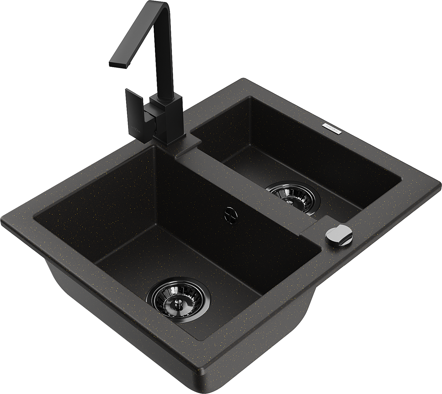 Mexen Carlos гранитна мивка с 1,5 отделения с кухненски смесител Rita, черен/златен металик - 6518-75-670300-70-B