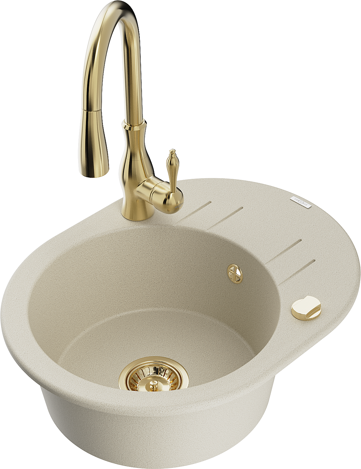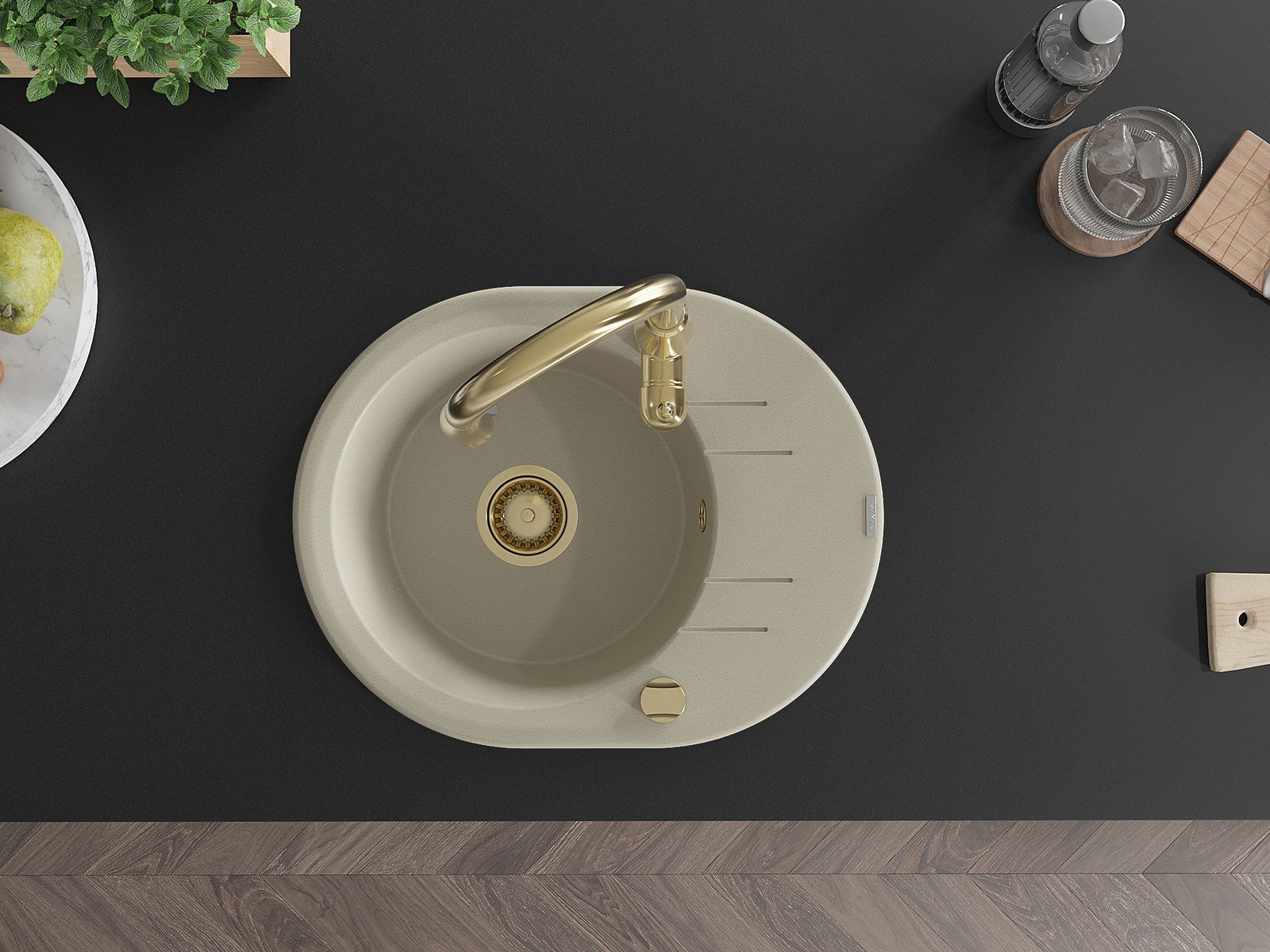 Mexen Kevin гранитна мивка с 1 отделение с отцедник и кухненски смесител Savita, бежов - 6517-69-672601-50