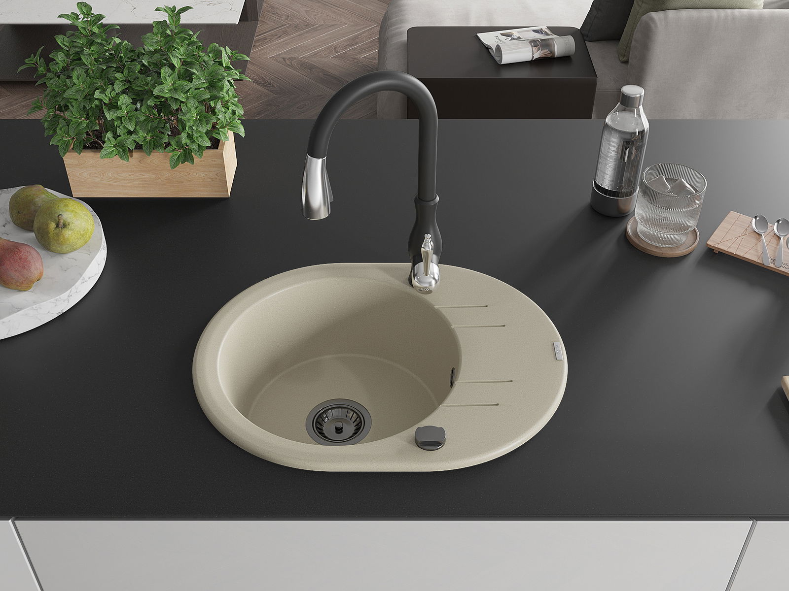 Мивката е направена от висококачествен гранит. Това е елегантно и най -вече практично допълнение към всяка кухня, независимо от нейния стил. Висококачествената и гранитна издръжливост осигуряват много години употреба.