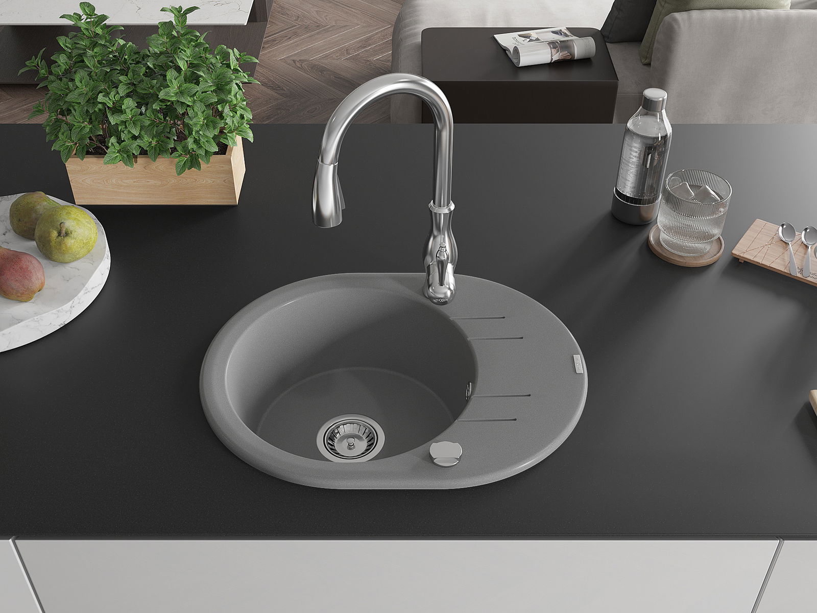 Мивката е направена от висококачествен гранит. Това е елегантно и най -вече практично допълнение към всяка кухня, независимо от нейния стил. Висококачествената и гранитна издръжливост осигуряват много години употреба.