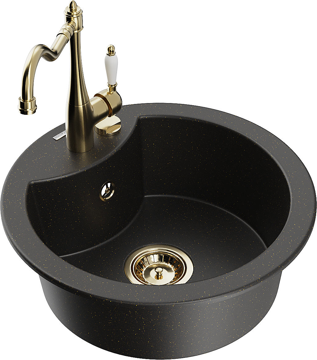 Mexen Diego еднокамерен гранитен мивка с кухненски смесител Carla, черен/златист металик - 6512-75-670700-50