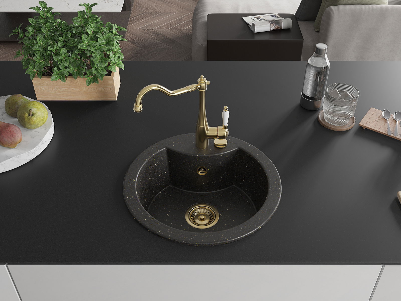 Мивката е направена от висококачествен гранит. Това е елегантно и най -вече практично допълнение към всяка кухня, независимо от нейния стил. Висококачествената и гранитна издръжливост осигуряват много години употреба.