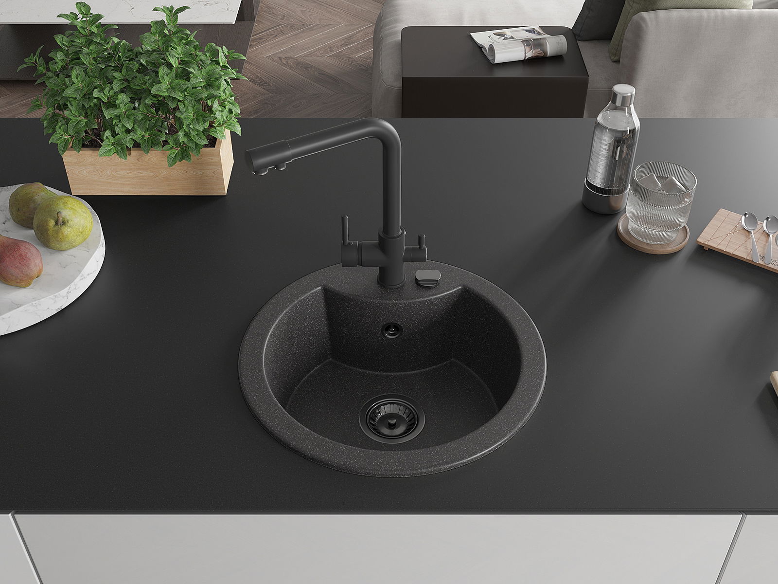 Мивката е направена от висококачествен гранит. Това е елегантно и най -вече практично допълнение към всяка кухня, независимо от нейния стил. Висококачествената и гранитна издръжливост осигуряват много години употреба.