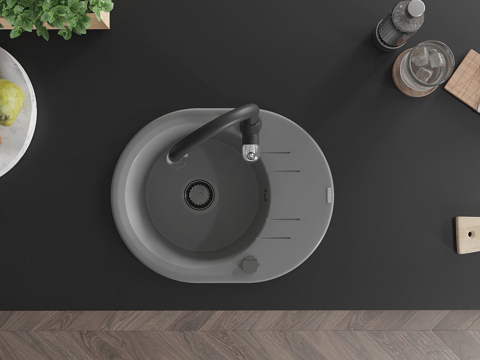 Мивката е направена от висококачествен гранит. Това е елегантно и най -вече практично допълнение към всяка кухня, независимо от нейния стил. Висококачествената и гранитна издръжливост осигуряват много години употреба.
