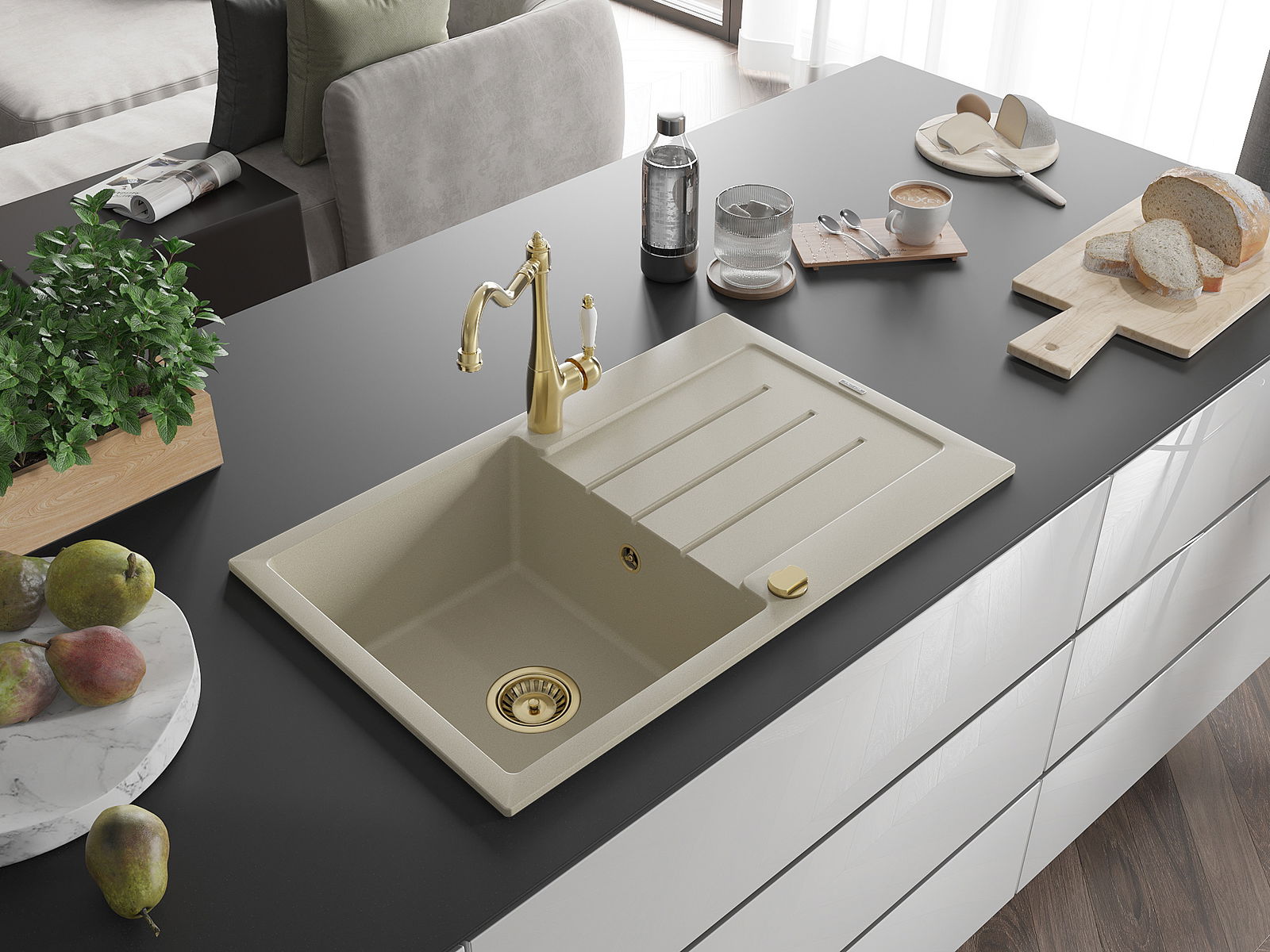 Мивката е направена от висококачествен гранит. Това е елегантно и най -вече практично допълнение към всяка кухня, независимо от нейния стил. Висококачествената и гранитна издръжливост осигуряват много години употреба.