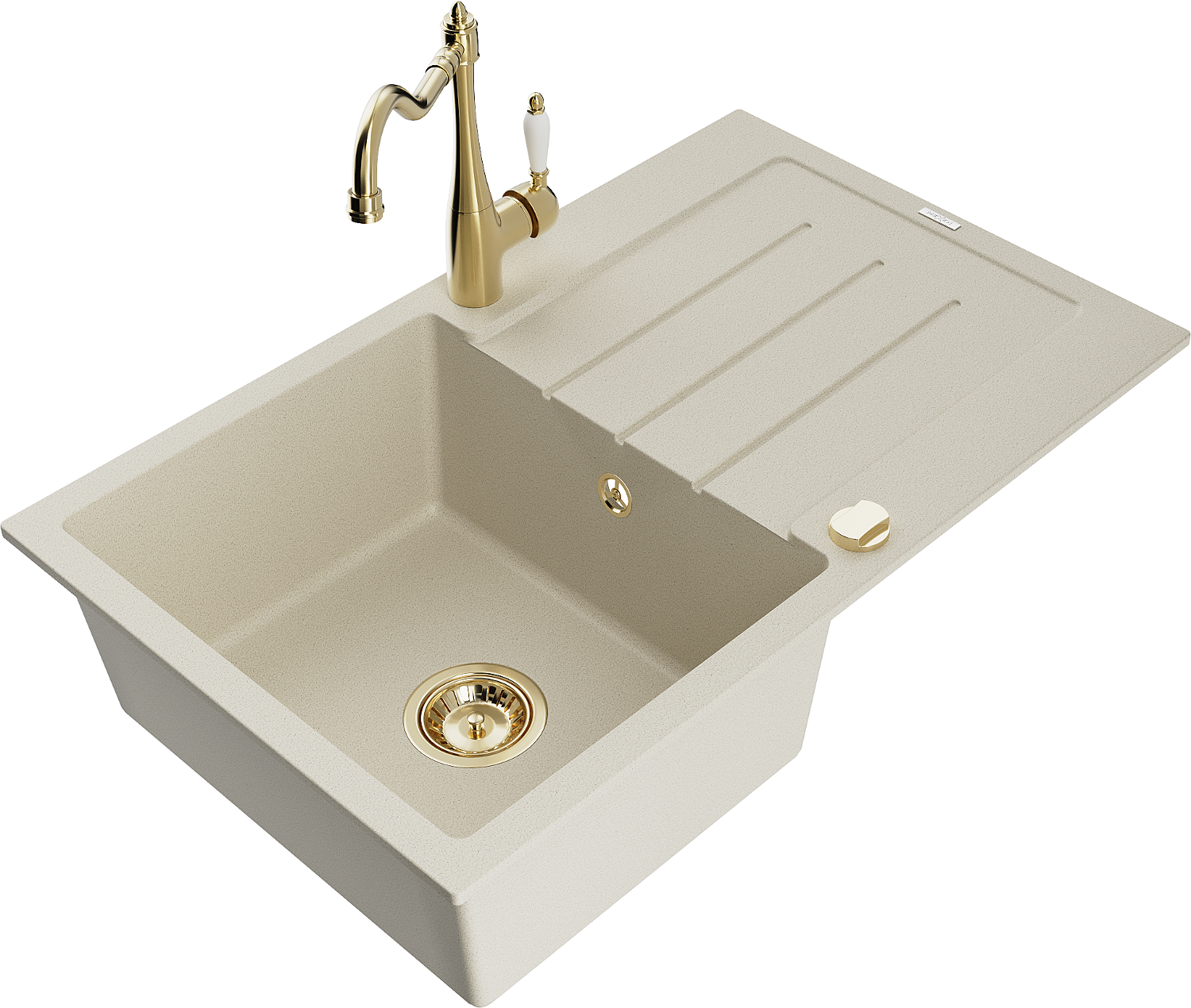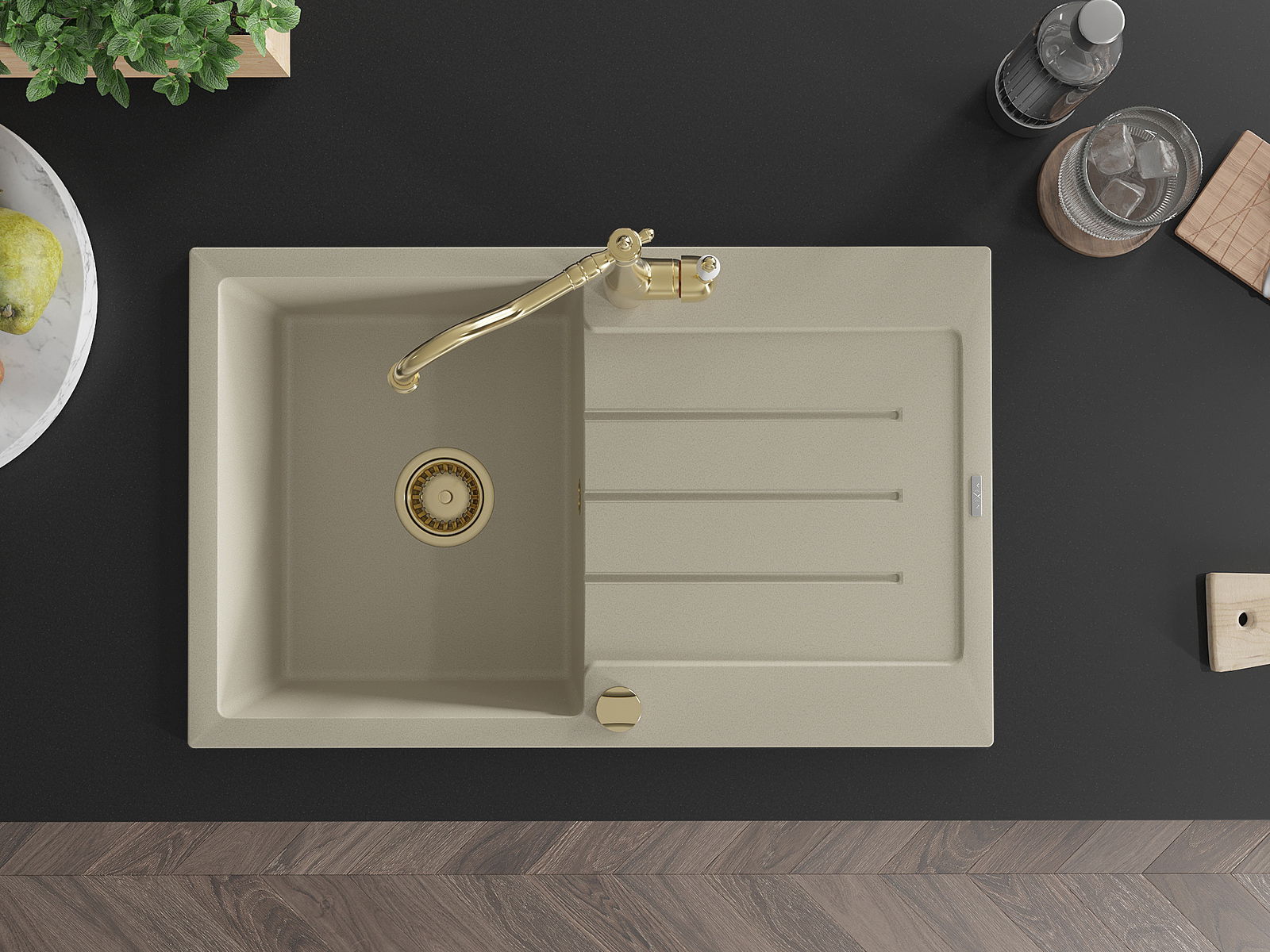 Mexen Bruno гранитна мивка с една камера с отцедник и кухненски смесител Carla, бежов - 6513-69-670700-50