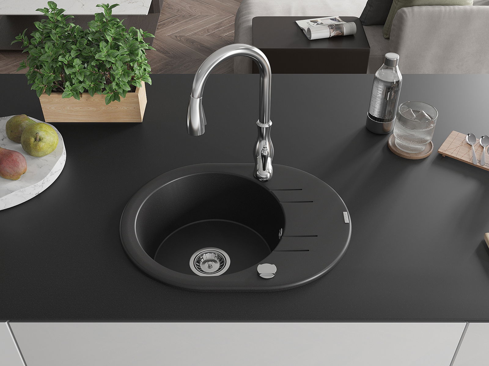 Мивката е направена от висококачествен гранит. Това е елегантно и най -вече практично допълнение към всяка кухня, независимо от нейния стил. Висококачествената и гранитна издръжливост осигуряват много години употреба.