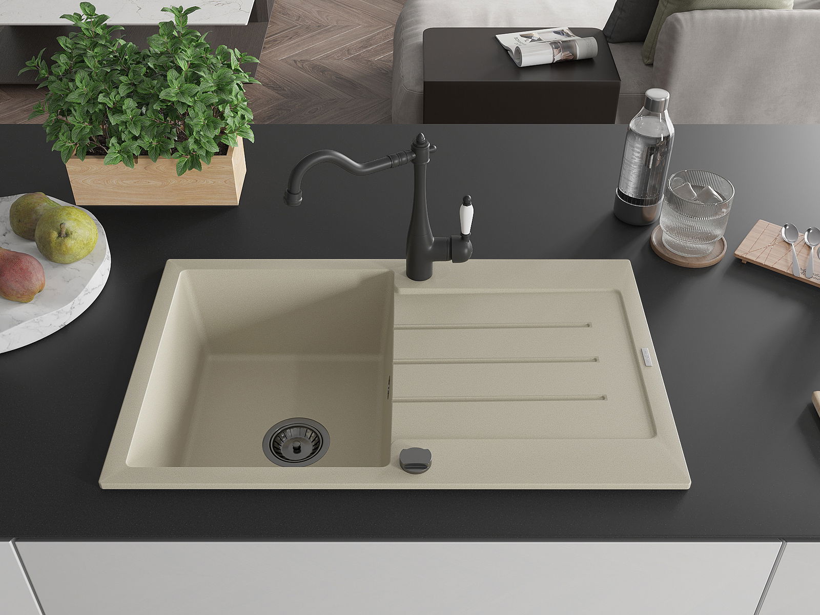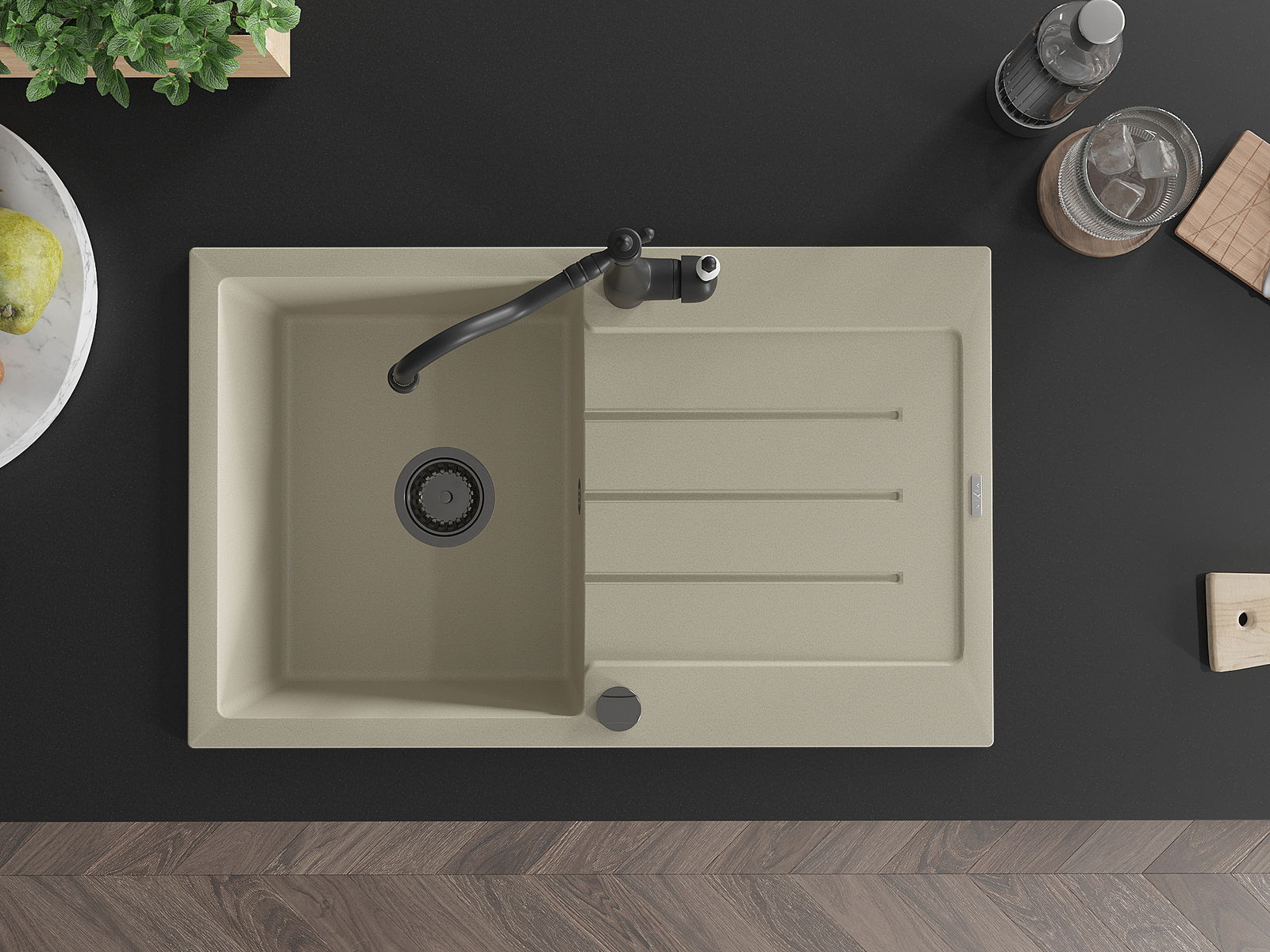 Мивката е направена от висококачествен гранит. Това е елегантно и най -вече практично допълнение към всяка кухня, независимо от нейния стил. Висококачествената и гранитна издръжливост осигуряват много години употреба.