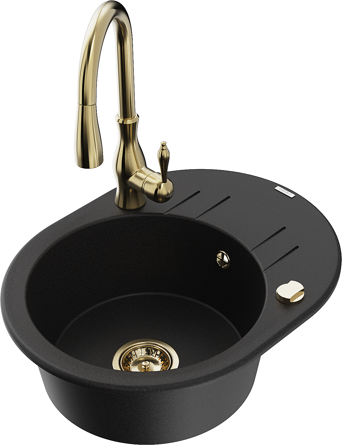 Мексен Кевин гранитна мивка с 1 отделение с отцедник и кухненски смесител Савита, черен - 6517-77-672601-50