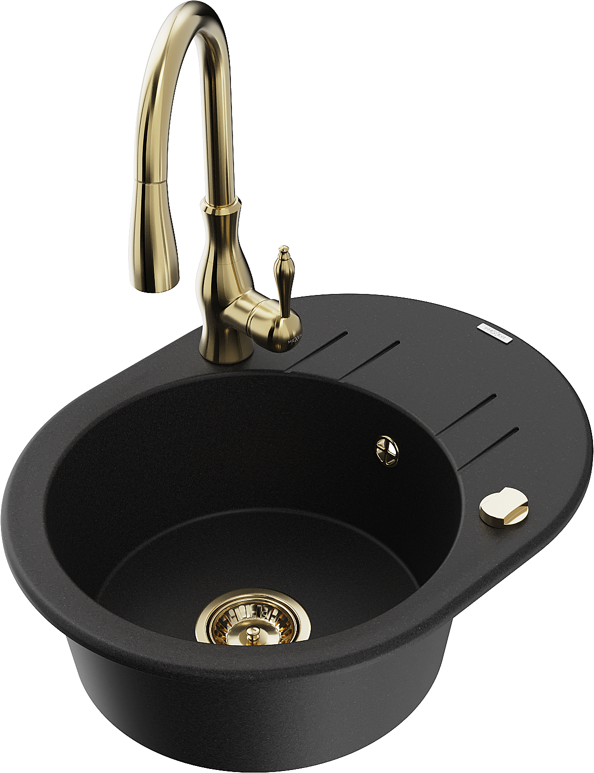 Mexen Kevin гранитна мивка с 1 корито с отцедник и кухненски смесител Savita,