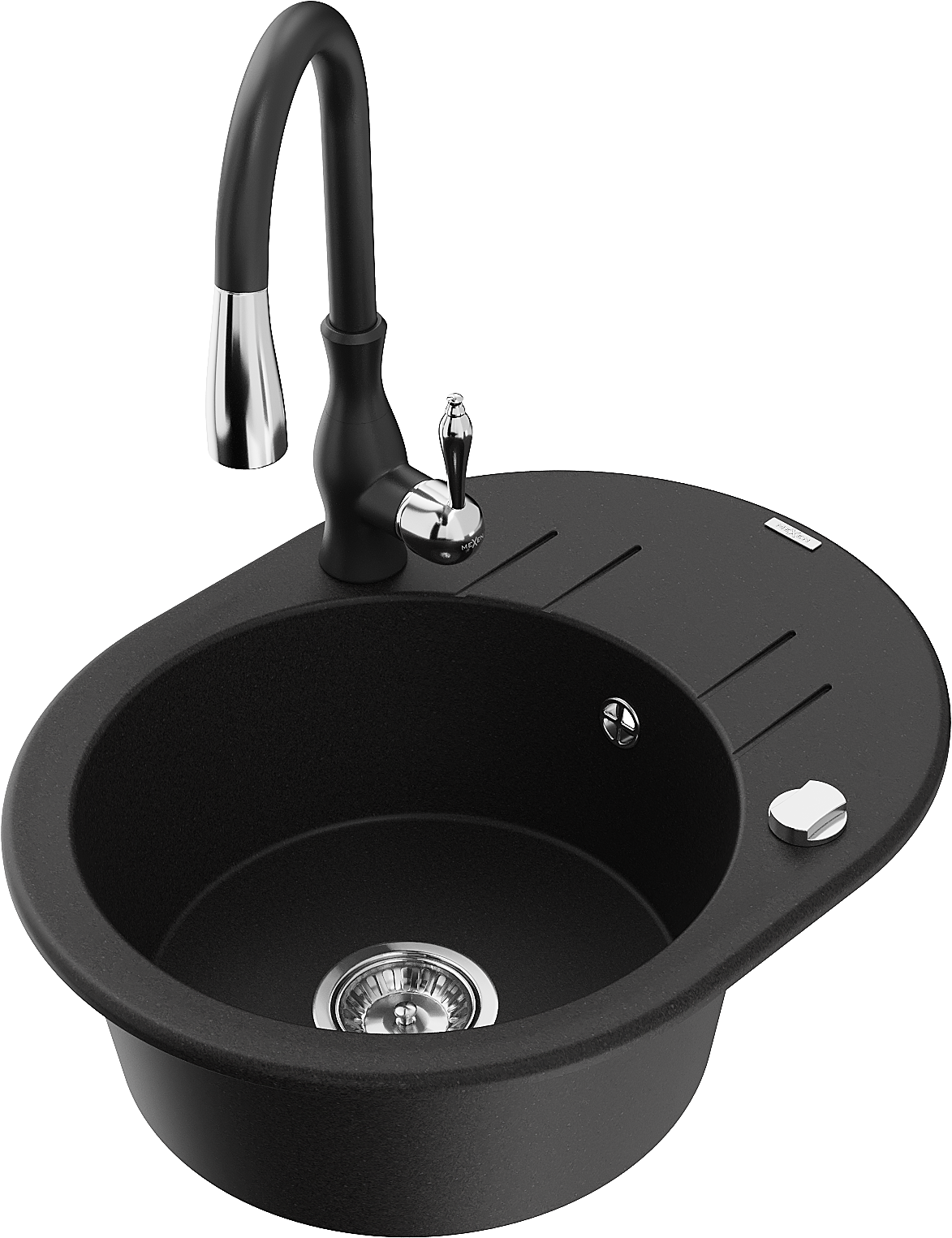Mexen Kevin гранитна кухненска мивка с една камера с отцедник и кухненски смесител Savita, черен - 6517-77-672601-70