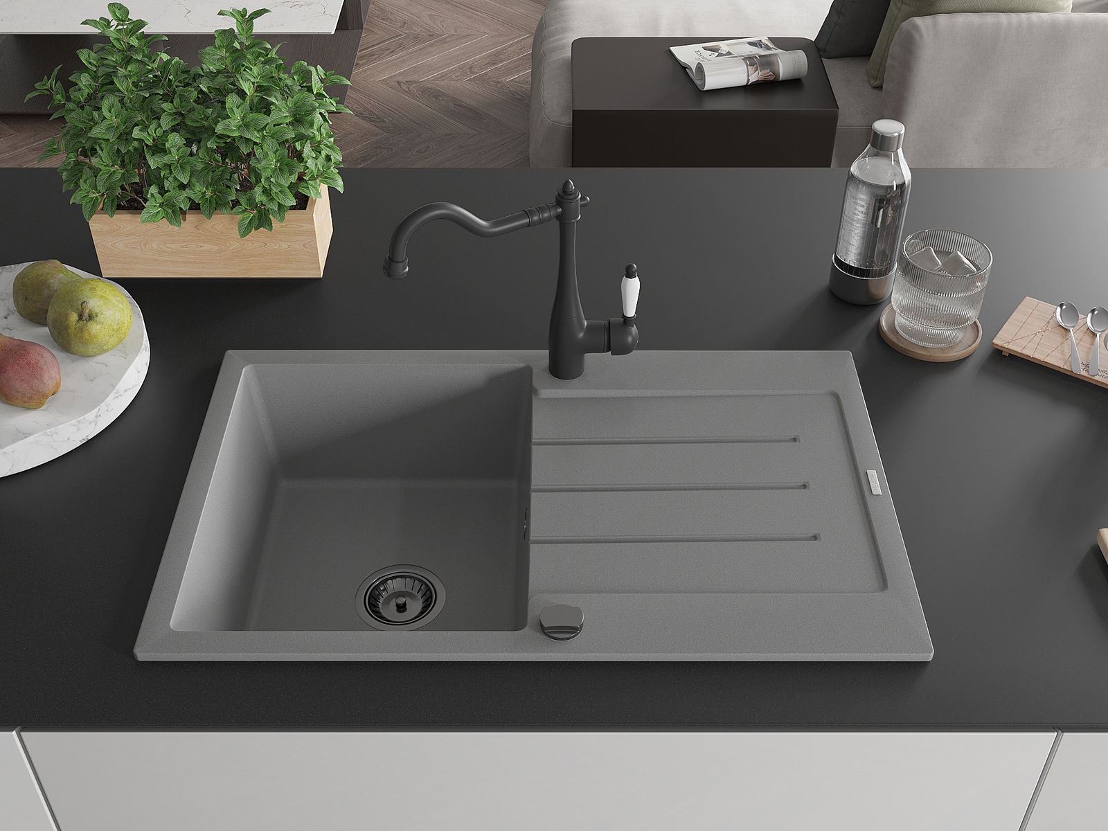 Мивката е направена от висококачествен гранит. Това е елегантно и най -вече практично допълнение към всяка кухня, независимо от нейния стил. Висококачествената и гранитна издръжливост осигуряват много години употреба.