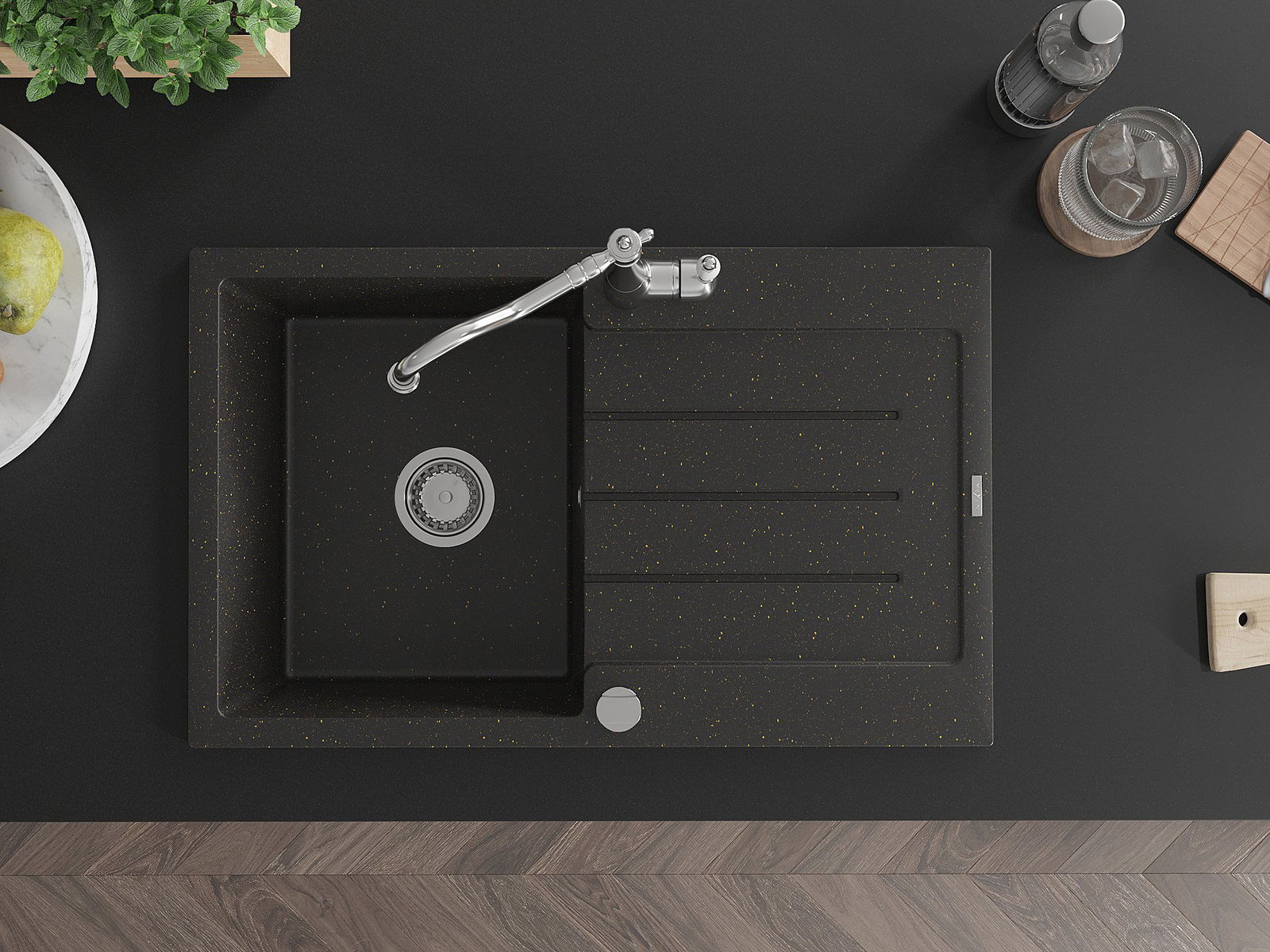 Mexen Bruno гранитна мивка с 1 отделение, отцедник и кухненски смесител Carla,