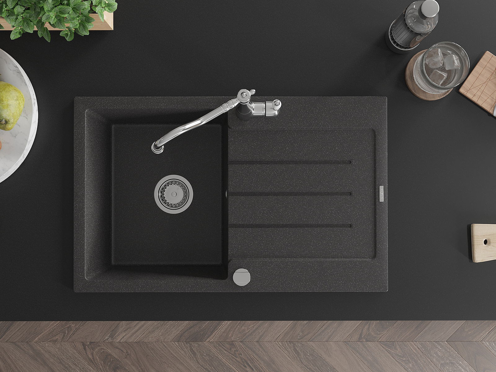 Мивката е направена от висококачествен гранит. Това е елегантно и най -вече практично допълнение към всяка кухня, независимо от нейния стил. Висококачествената и гранитна издръжливост осигуряват много години употреба.