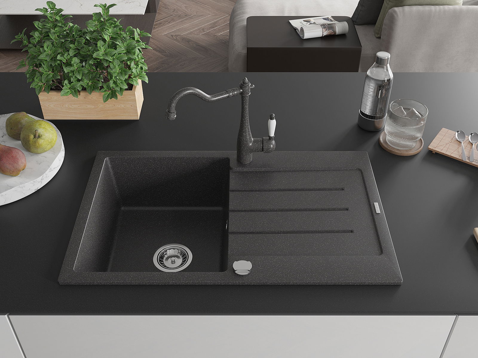 Мивката е направена от висококачествен гранит. Това е елегантно и най -вече практично допълнение към всяка кухня, независимо от нейния стил. Висококачествената и гранитна издръжливост осигуряват много години употреба.