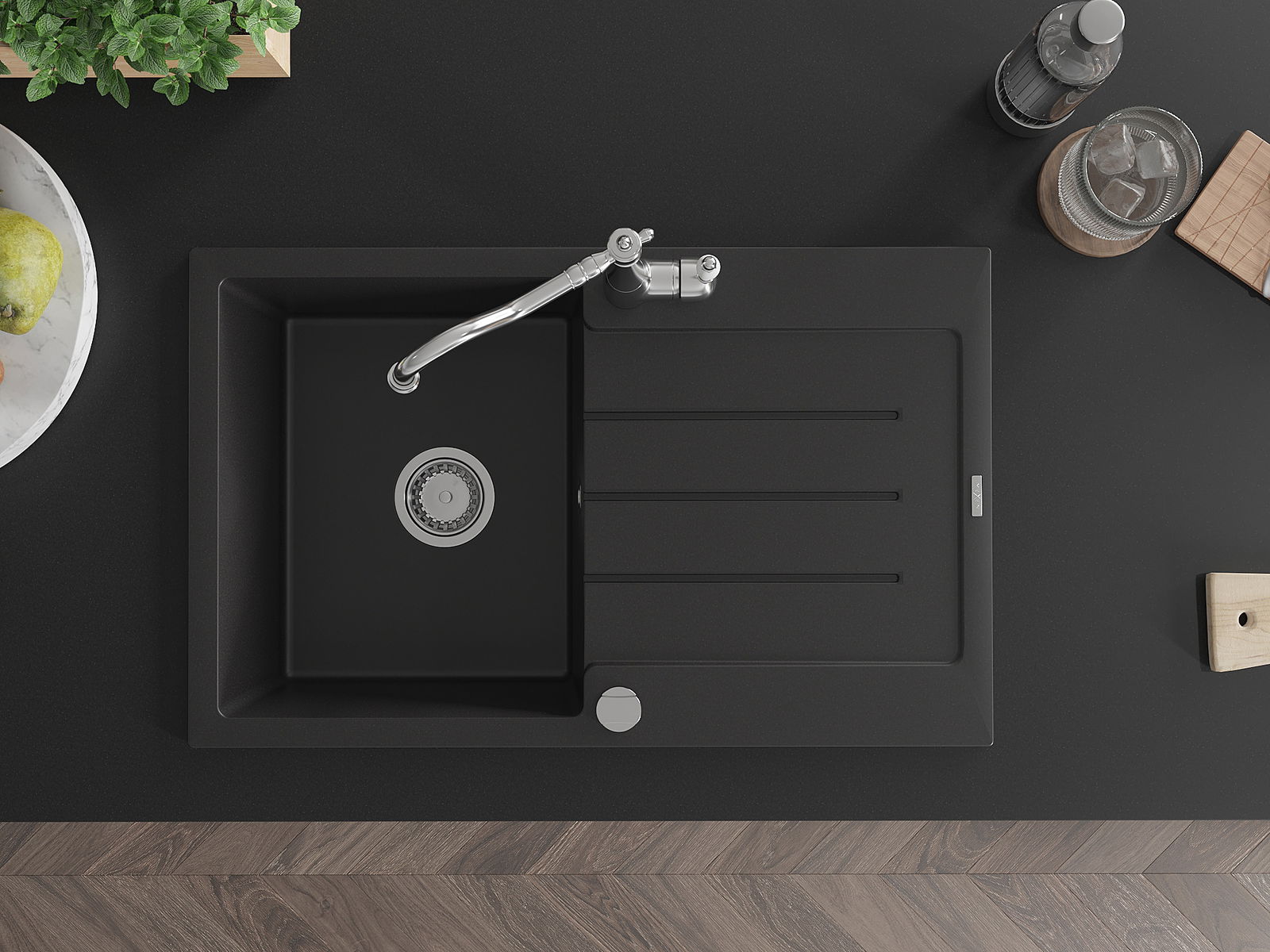 Мексен Бруно гранитна кухненска мивка с една камера и отцедник и кухненски смесител Карла, черен - 6513-77-670700-00