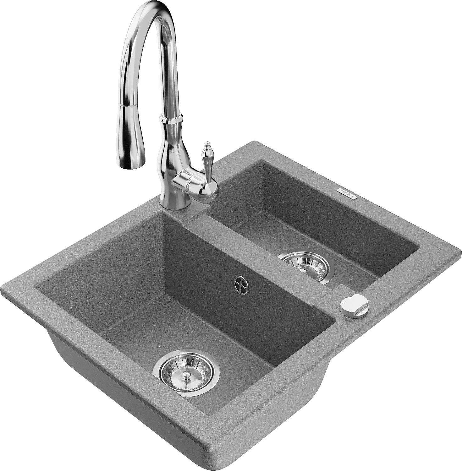 Mexen Carlos гранитна мивка с 1,5 камери и кухненски смесител Savita, сив - 6518-71-672601-00