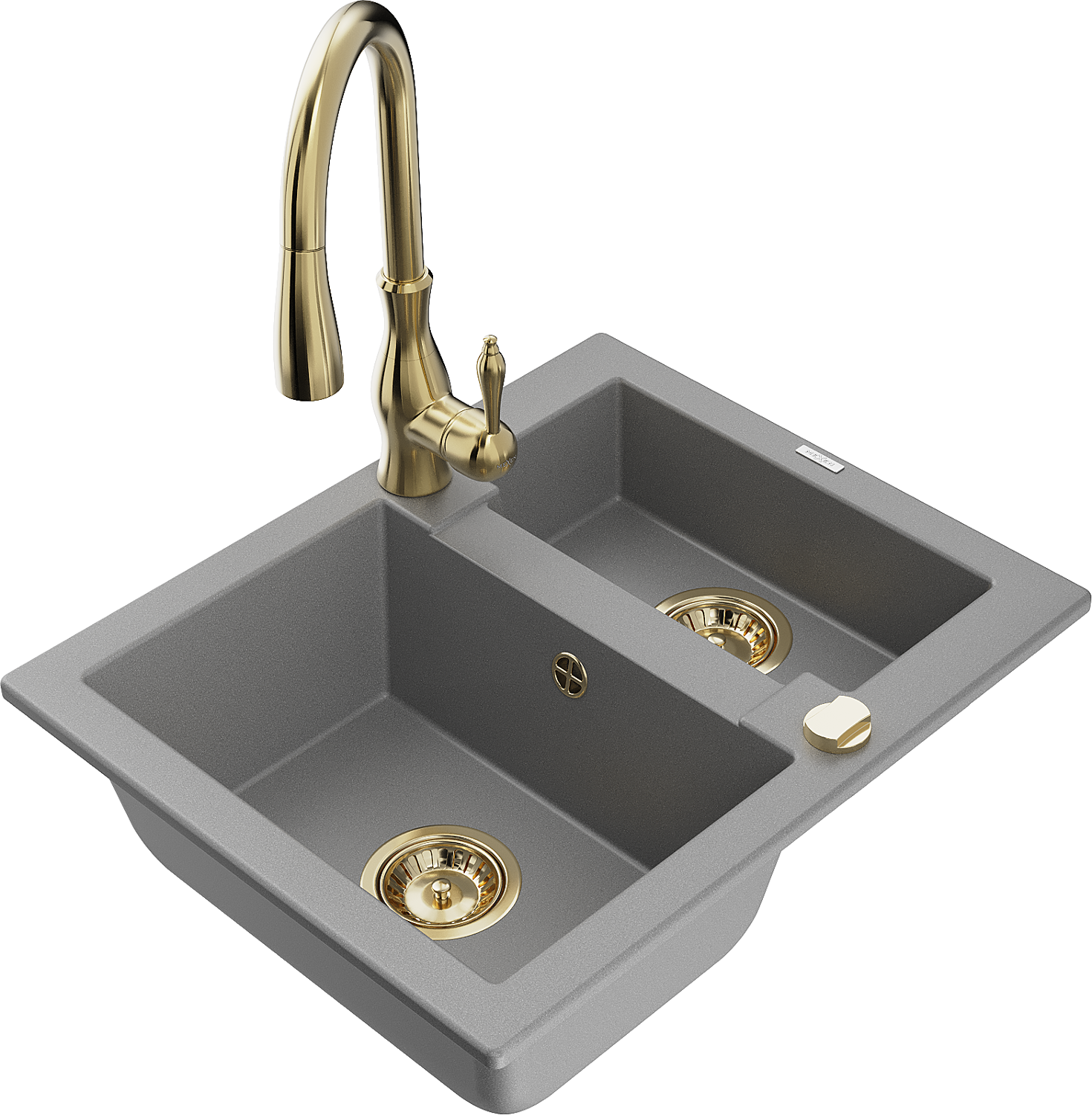 Mexen Carlos гранитна мивка с 1,5 камери и кухненски смесител Savita, сив - 6518-71-672601-50