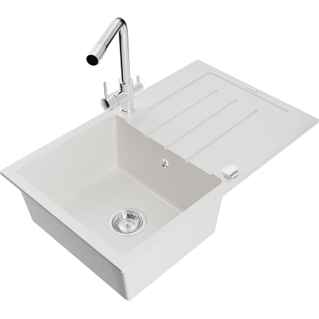 Mexen Bruno гранитна мивка с 1 камера и капак, с кухненска батерия Duero, бяла - 6513-20-671600-00