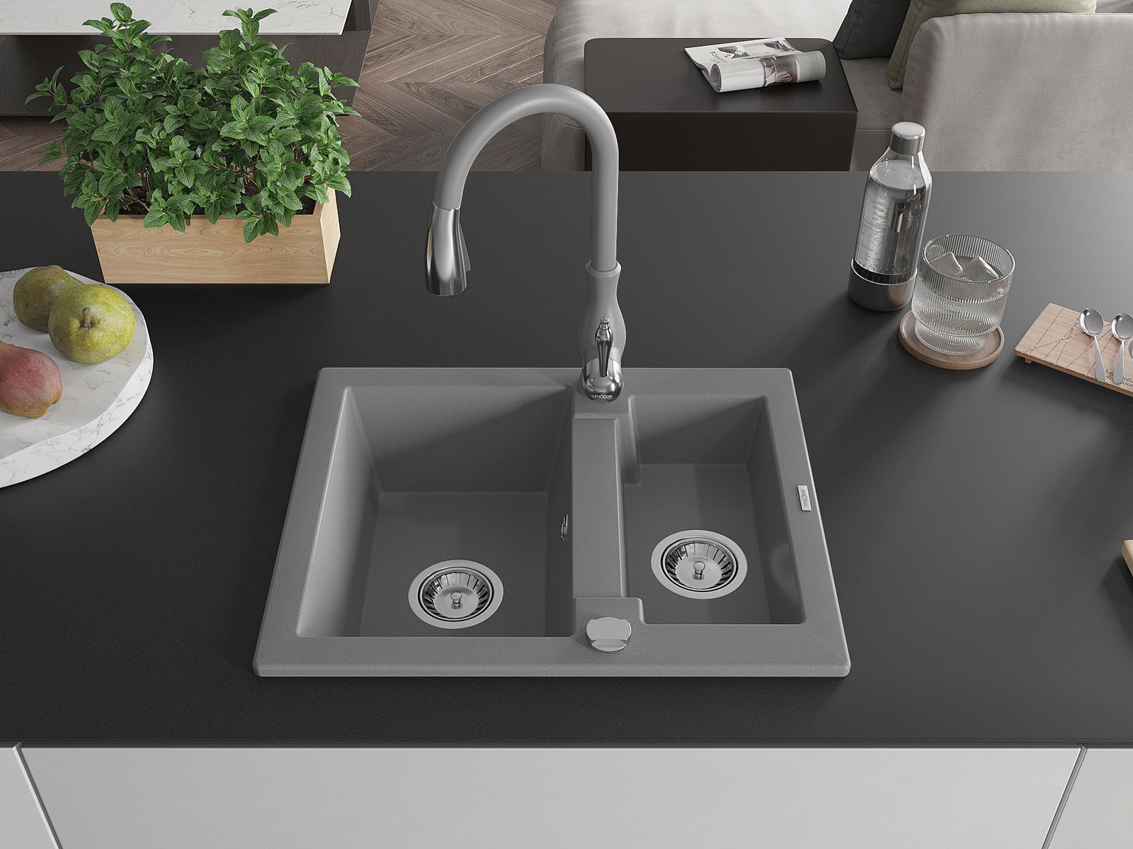 Мивката е направена от висококачествен гранит. Това е елегантно и най -вече практично допълнение към всяка кухня, независимо от нейния стил. Висококачествената и гранитна издръжливост осигуряват много години употреба.