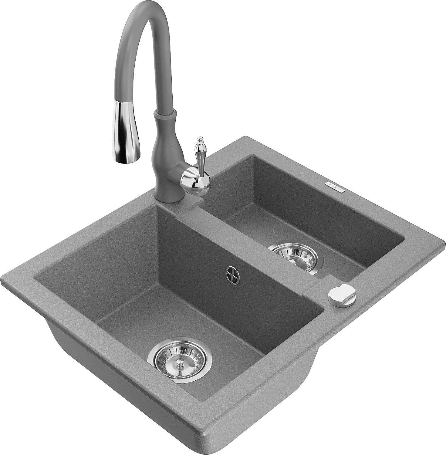Mexen Carlos гранитна мивка 1,5-коморна с кухненски смесител Savita, сива - 6518-71-672601-71