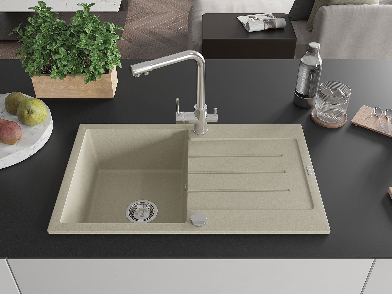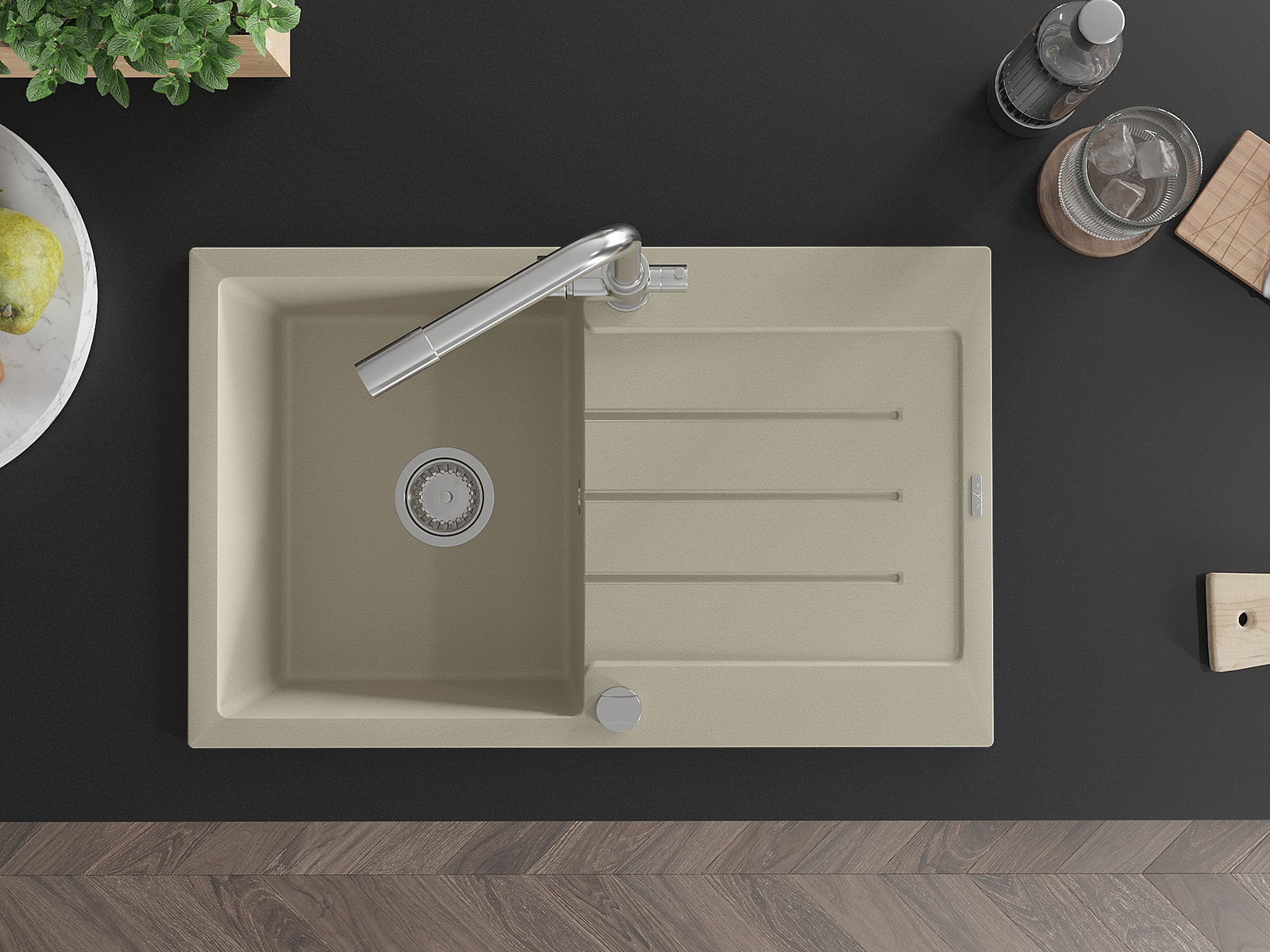 Повърхността на мивката е устойчива на петна и обезцветяване, благодарение на които е лесно да се почиства и запазва цвета си за дълго време. Естетически и практически допълващи всяка кухня.