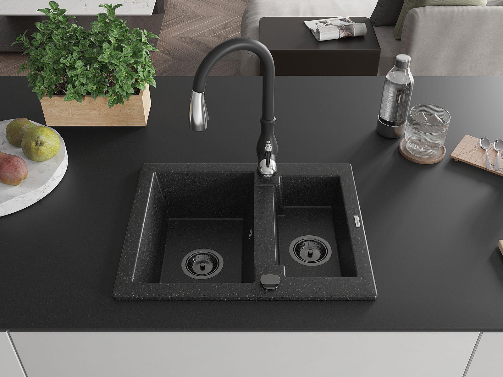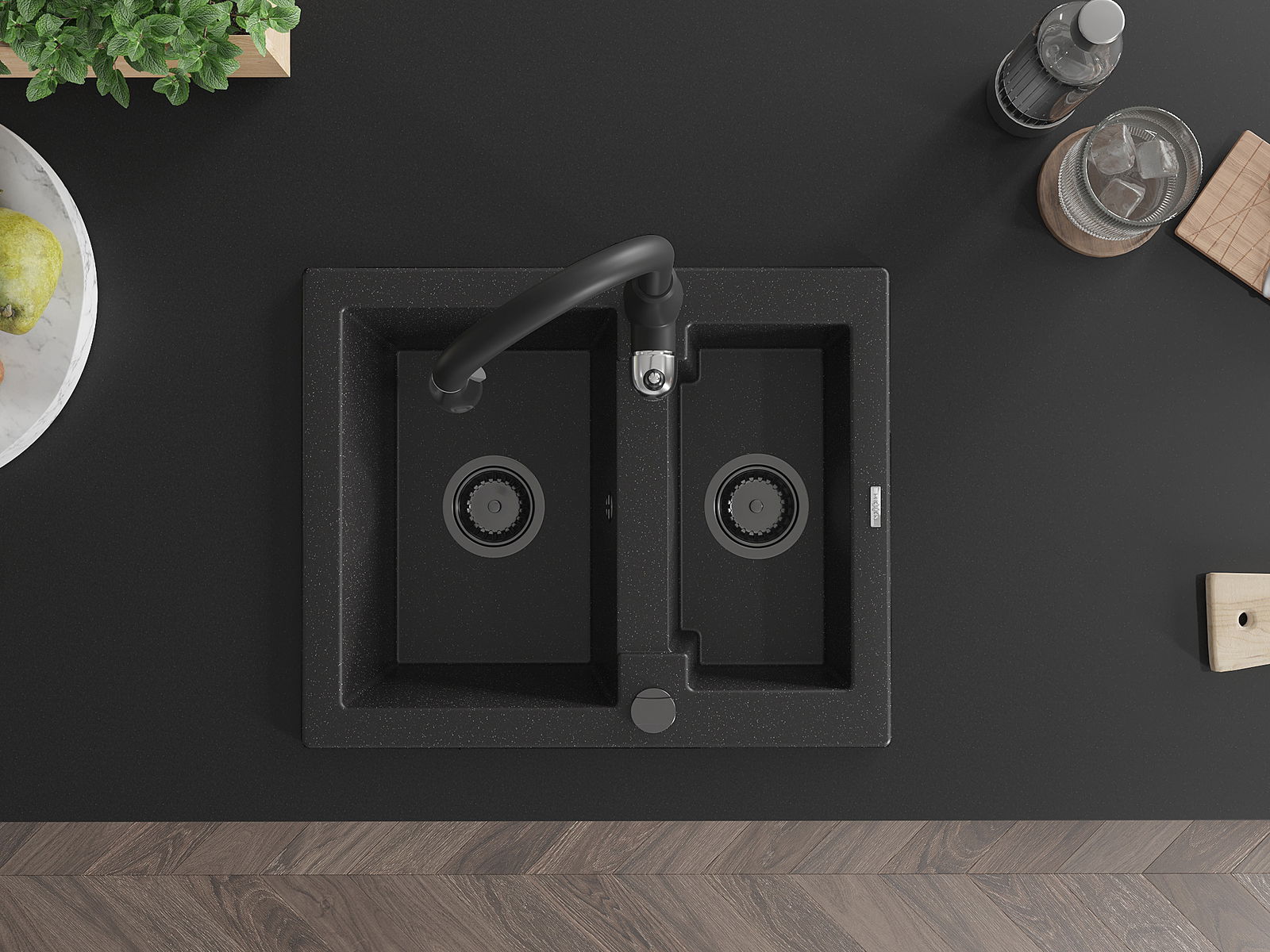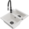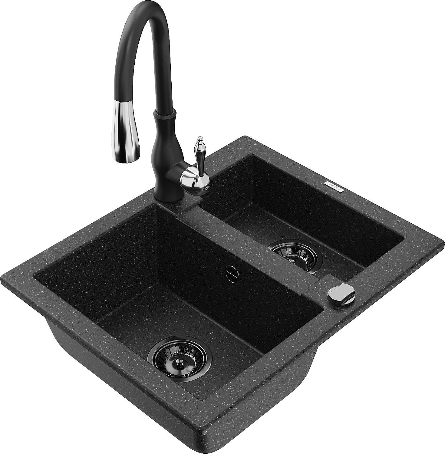 Mexen Carlos гранитна мивка 1,5-камерна с кухненски смесител Savita, черен/сребърен металик - 6518-73-672601-70-B