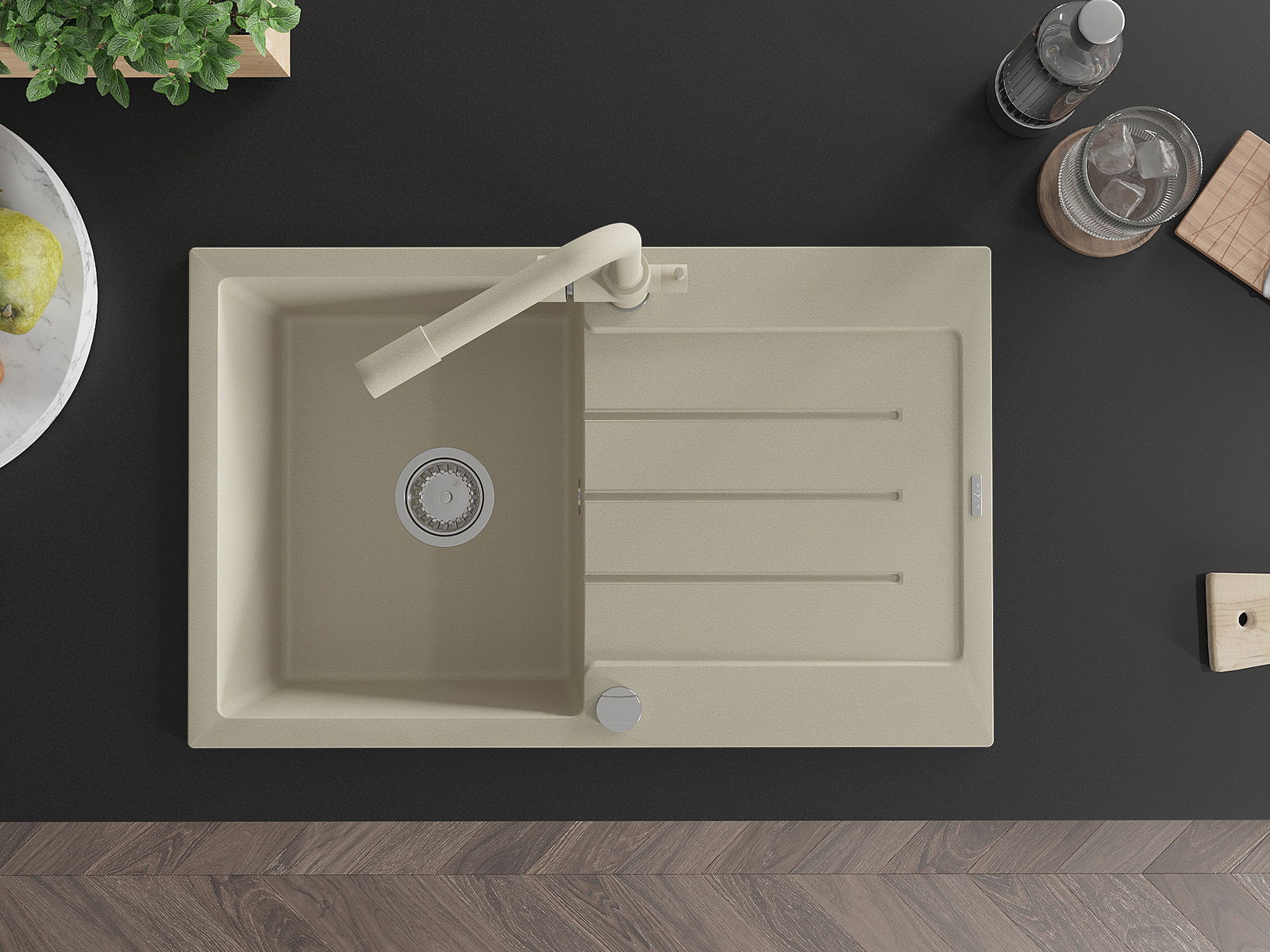 Mexen Bruno гранитна мивка с една камера с отцедник и кухненски смесител Duero, бежов - 6513-69-671600-69