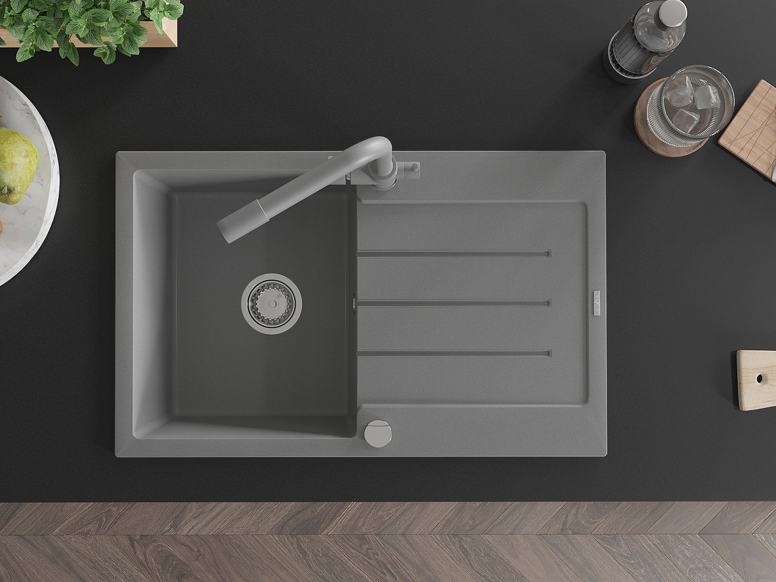 Mexen Bruno мивка от гранит с 1 камера с отцедник и кухненски смесител Duero, сив - 6513-71-671600-71
