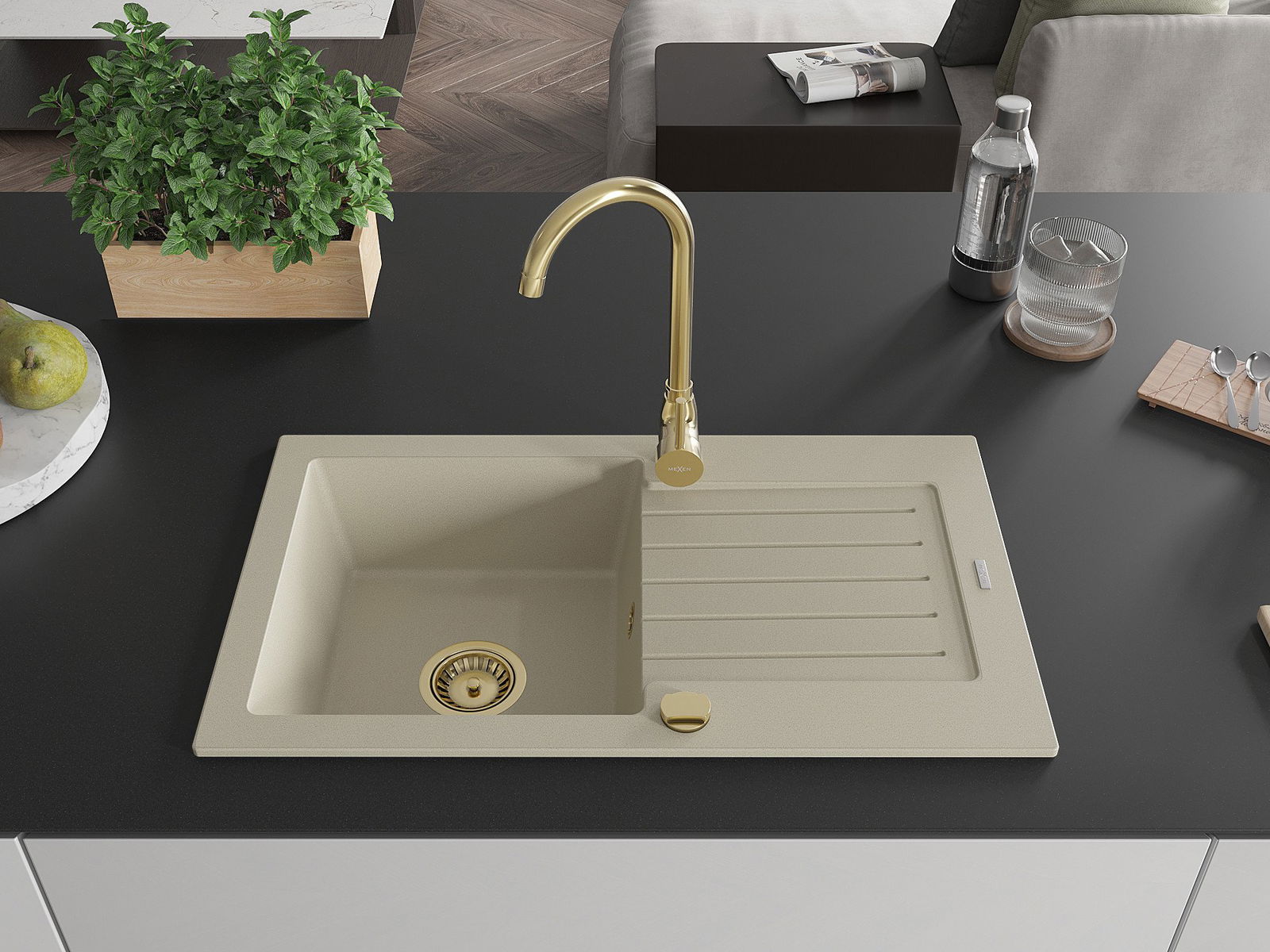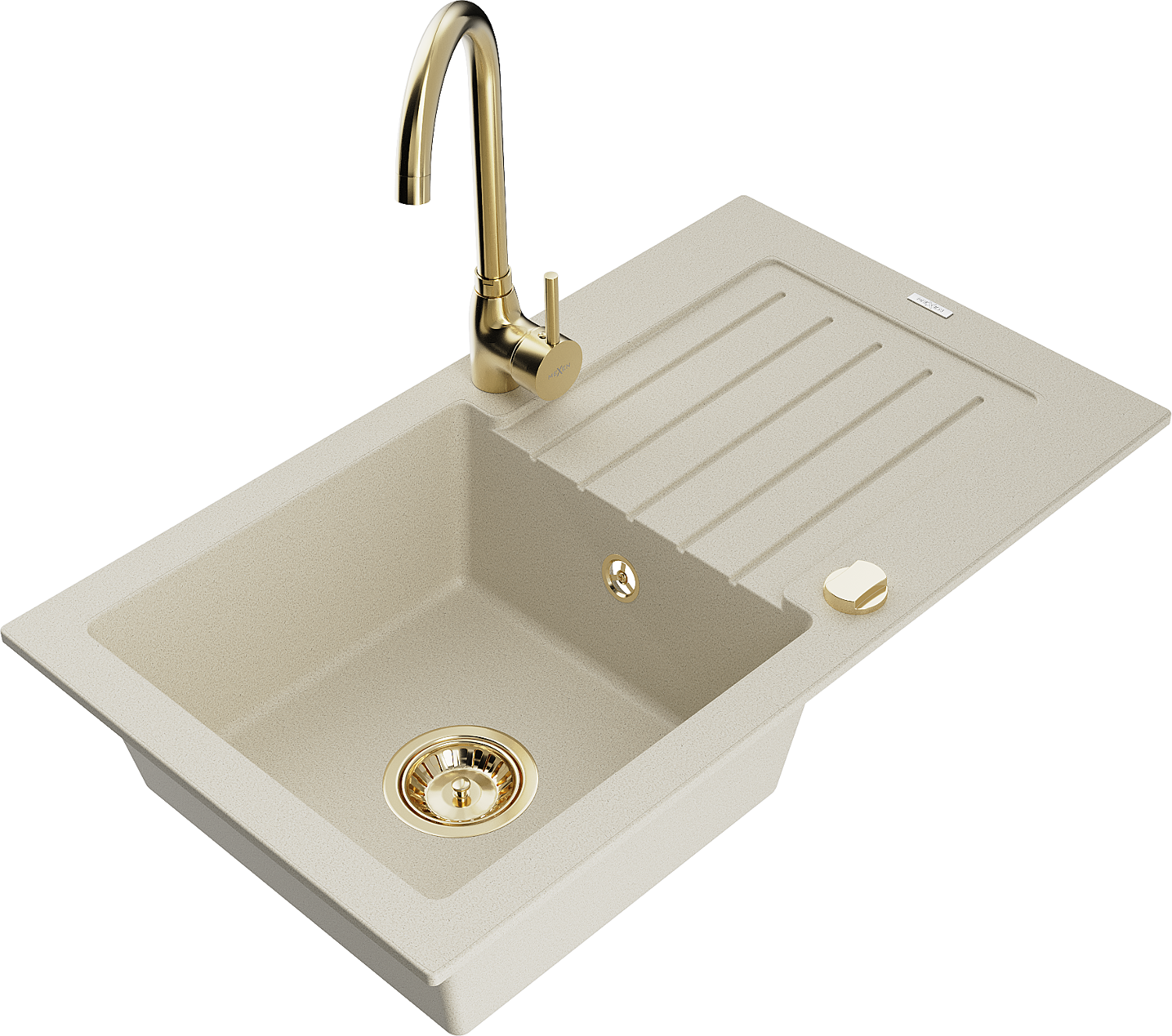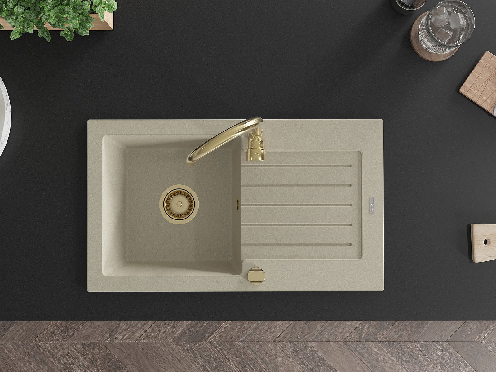 Mexen Pablo гранитна мивка с 1 отделение, с отцедник и кухненски смесител Telma, бежов - 6510-69-670200-50