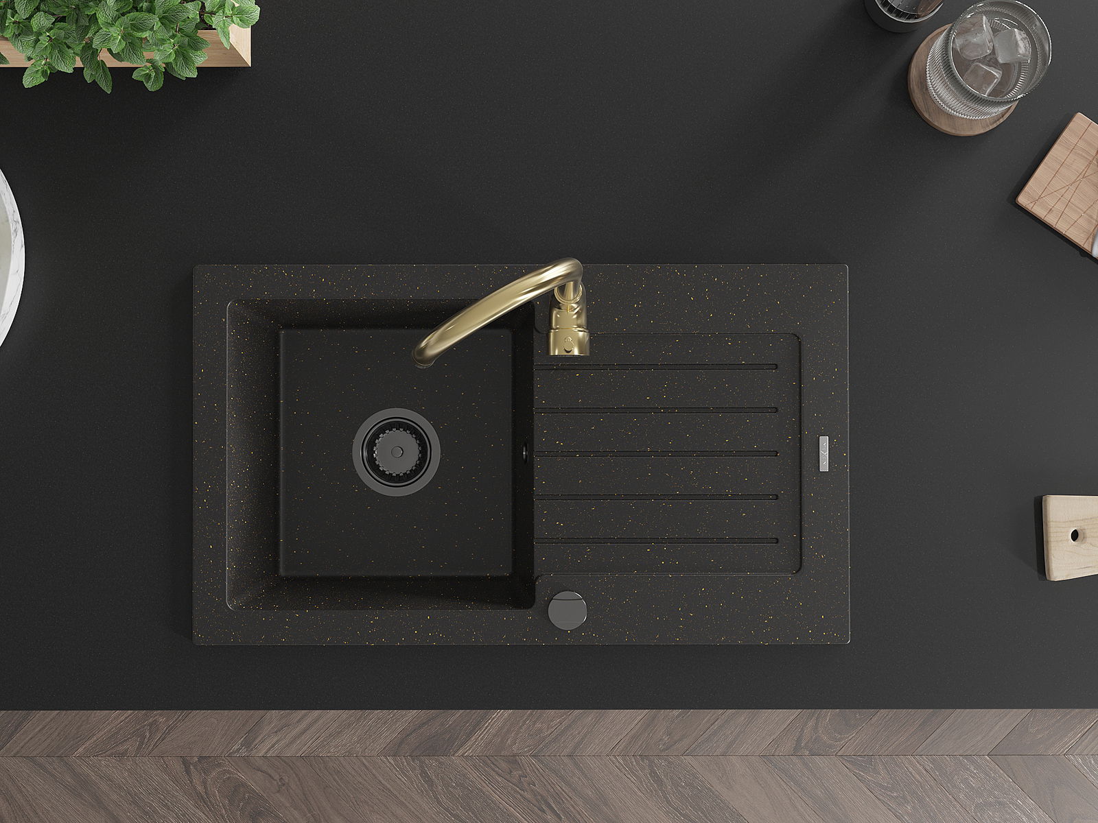 Мивката е направена от висококачествен гранит. Това е елегантно и най -вече практично допълнение към всяка кухня, независимо от нейния стил. Висококачествената и гранитна издръжливост осигуряват много години употреба.