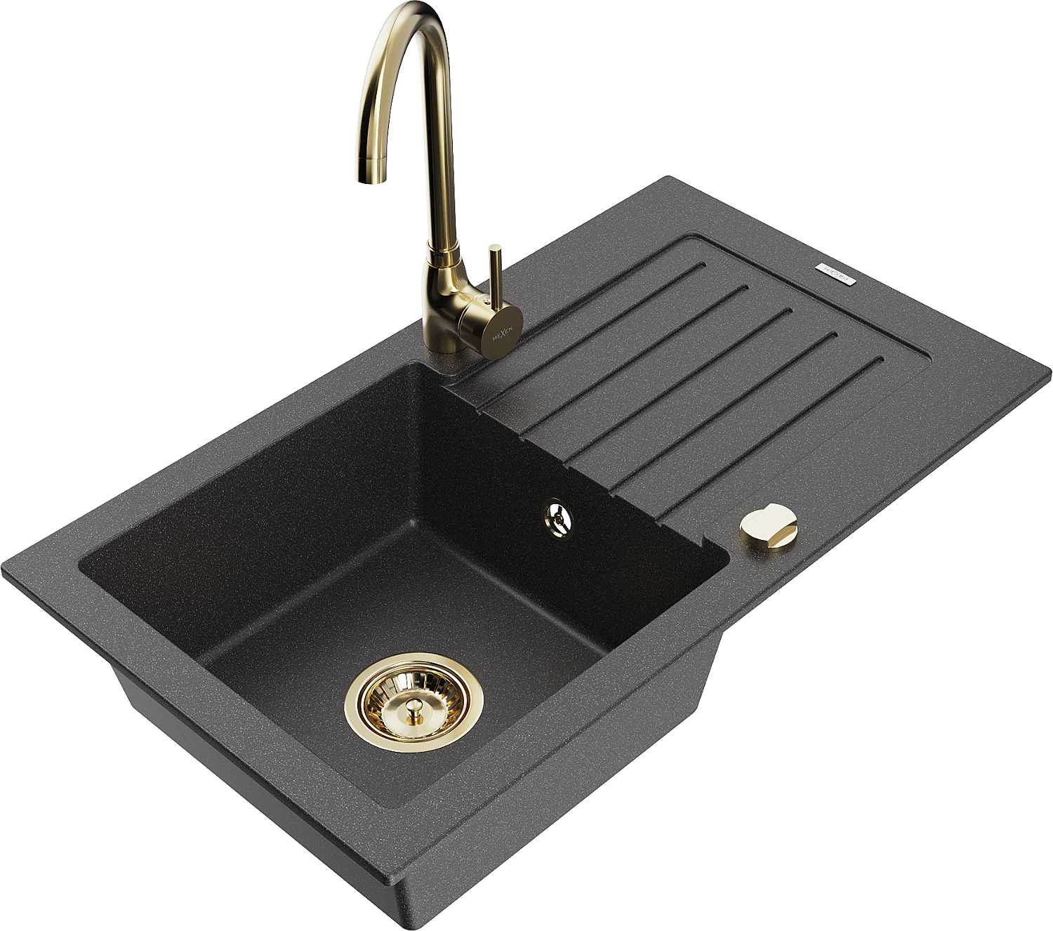 Mexen Pablo мивка от гранит 1-камерна с отцедник и кухненски смесител Telma, черно на капки - 6510-76-670200-50