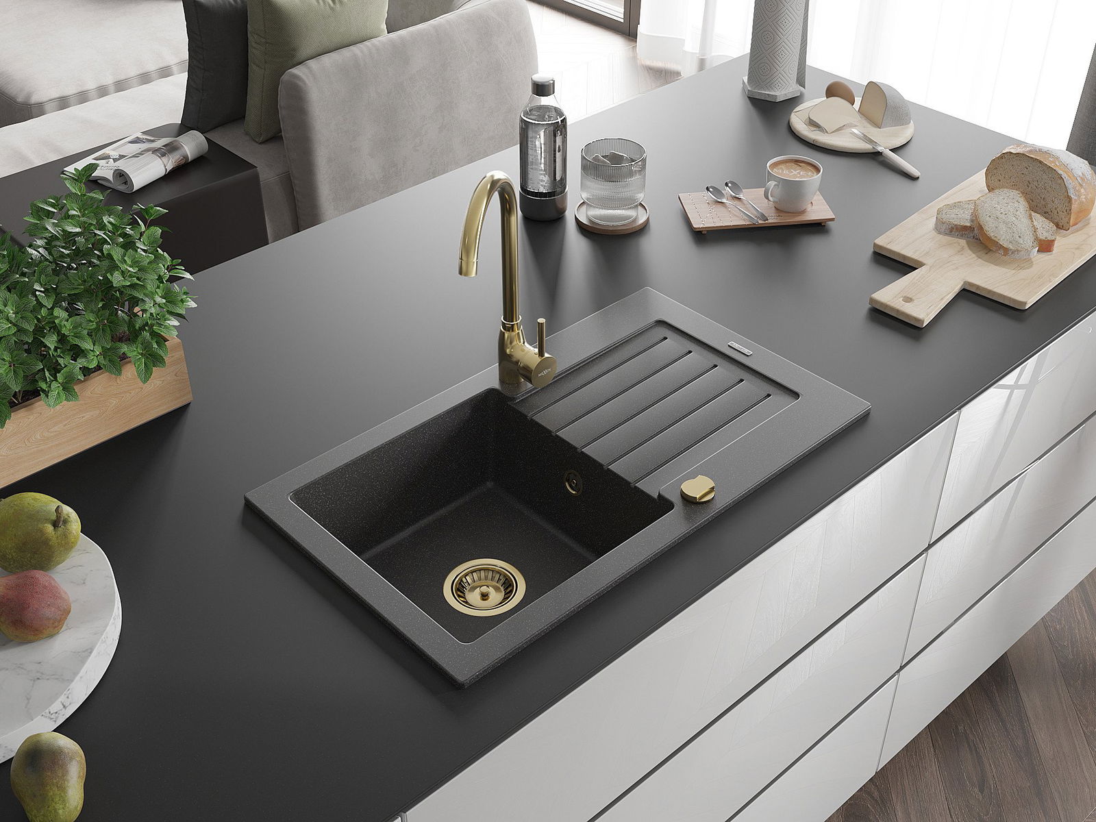 Мивката е направена от висококачествен гранит. Това е елегантно и най -вече практично допълнение към всяка кухня, независимо от нейния стил. Висококачествената и гранитна издръжливост осигуряват много години употреба.