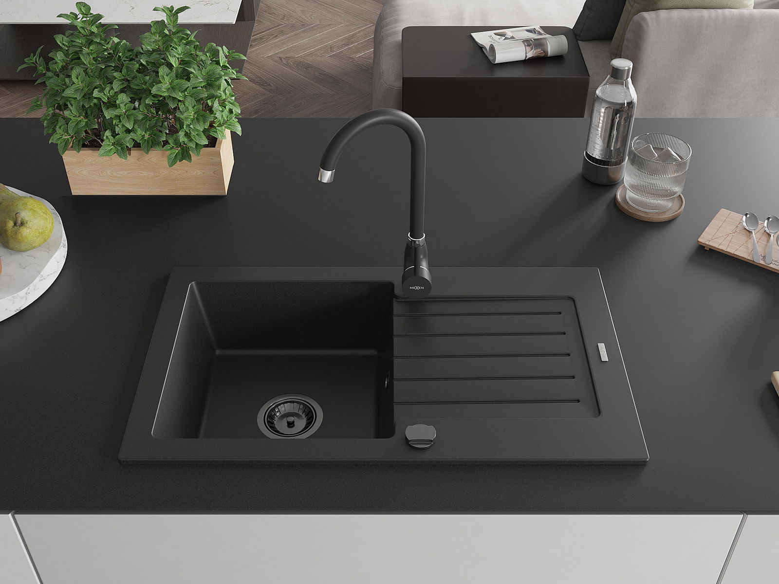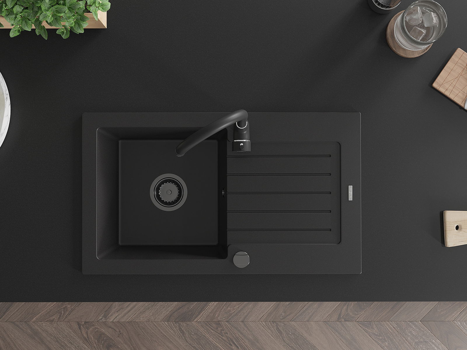 Mexen Pablo гранитна кухненска мивка с 1 камера и сушилник с кухненски кран