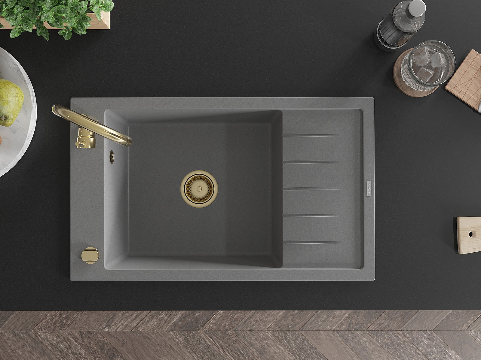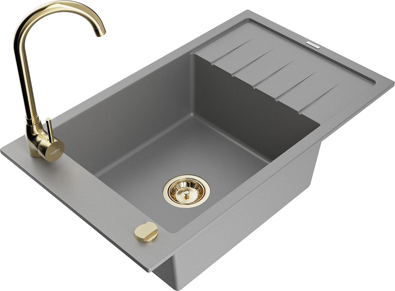 Mexen Elias Гранитна мивка 1-коморна с отцедник и кухненски смесител Telma, сив - 6511-71-670200-50