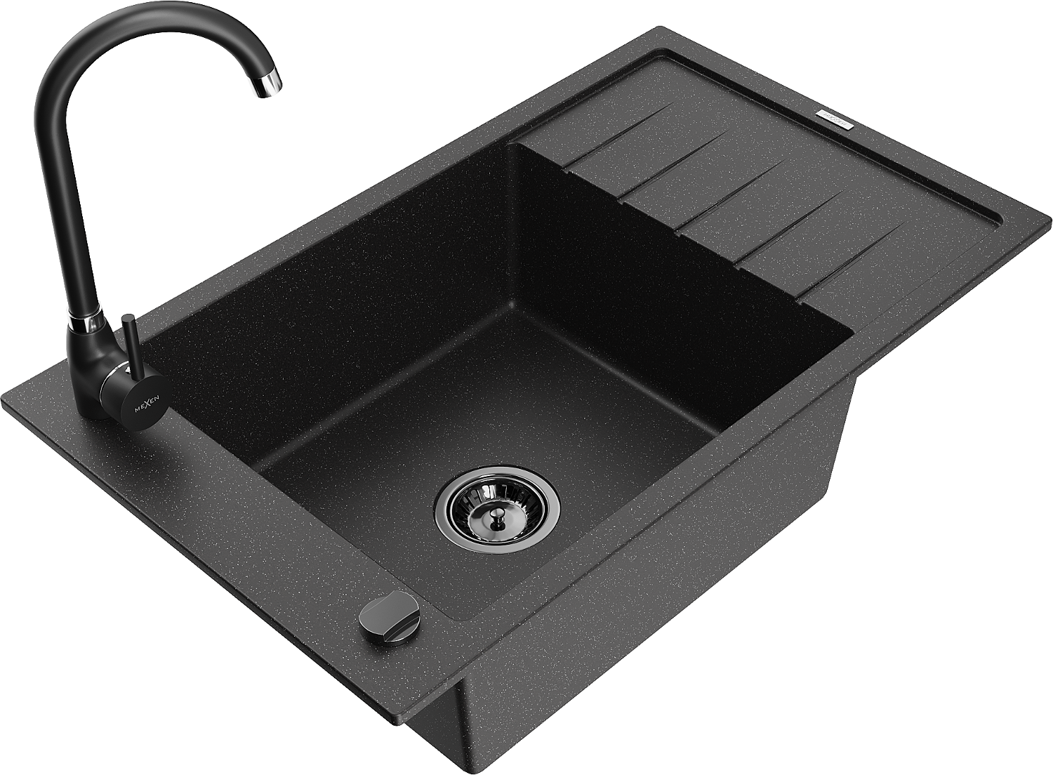 Mexen Elias гранитна мивка с 1 отделение с дренаж и кухненски смесител Telma, черно/сребристо - 6511-73-670200-70-B