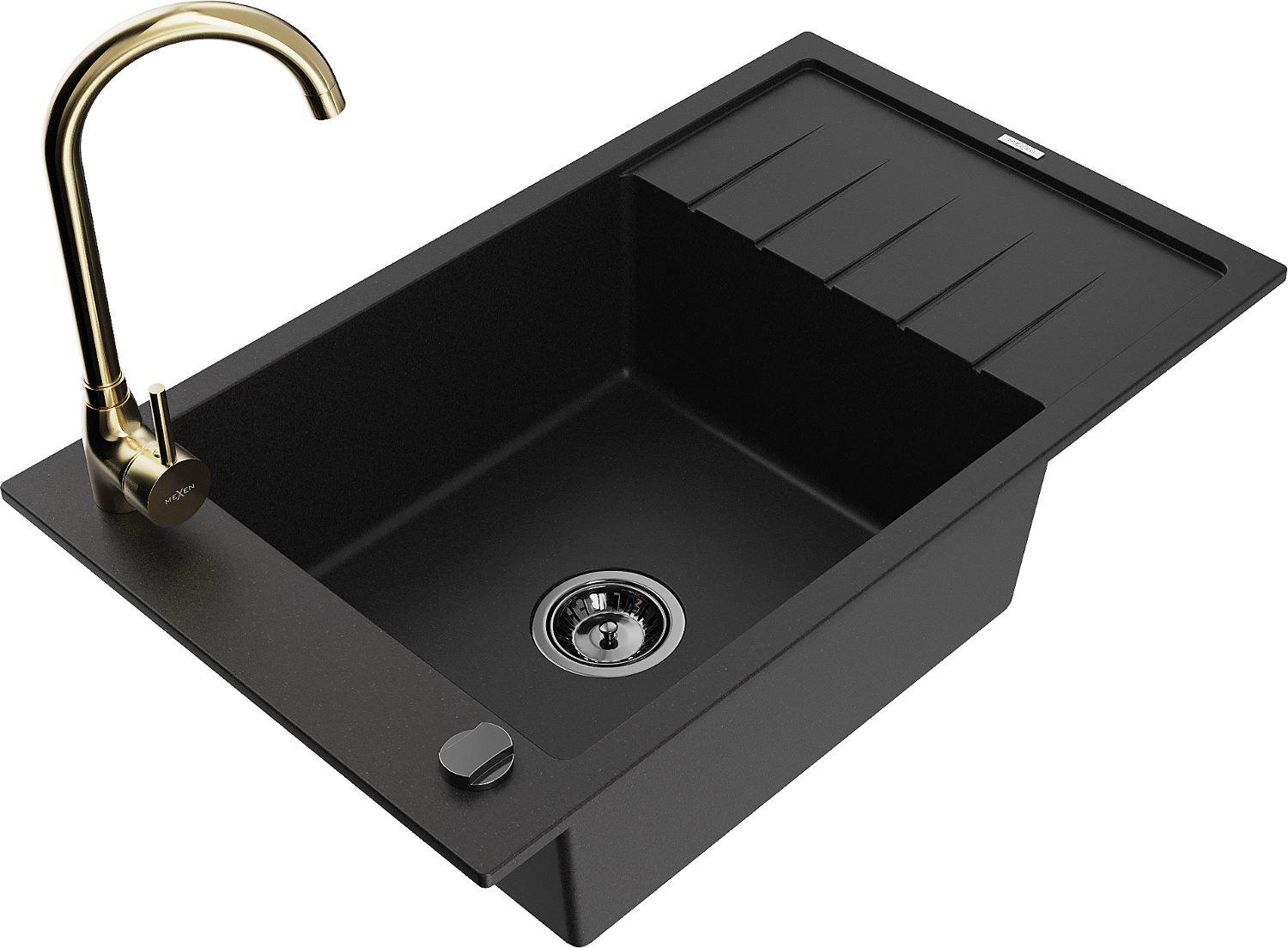 Mexen Elias гранитна мивка с 1 отделение с отцедник и кухненски смесител Telma, черен - 6511-77-670200-50-B