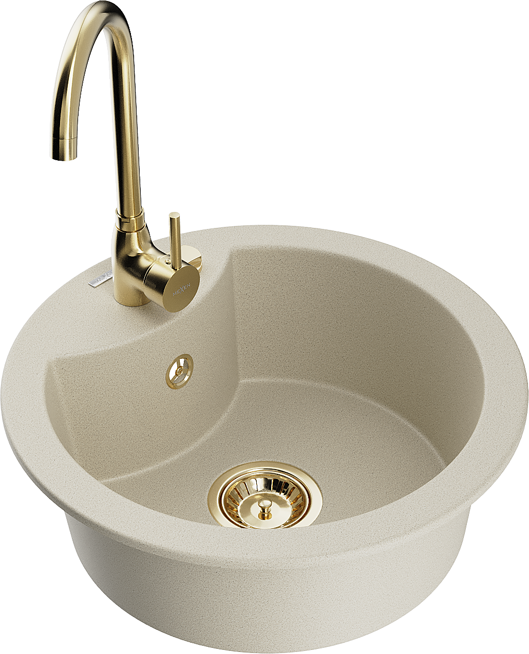 Mexen Diego гранитна мивка с 1 отделение с кухненски смесител Telma, бежов - 6512-69-670200-50