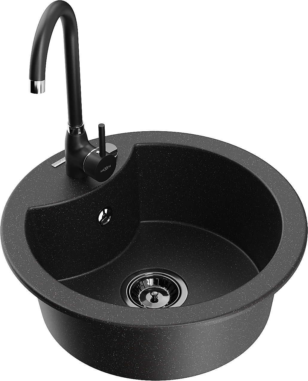 Mexen Diego гранитна мивка с 1 гнездо и кухненски смесител Telma, черен/сребрист - 6512-73-670200-70-B