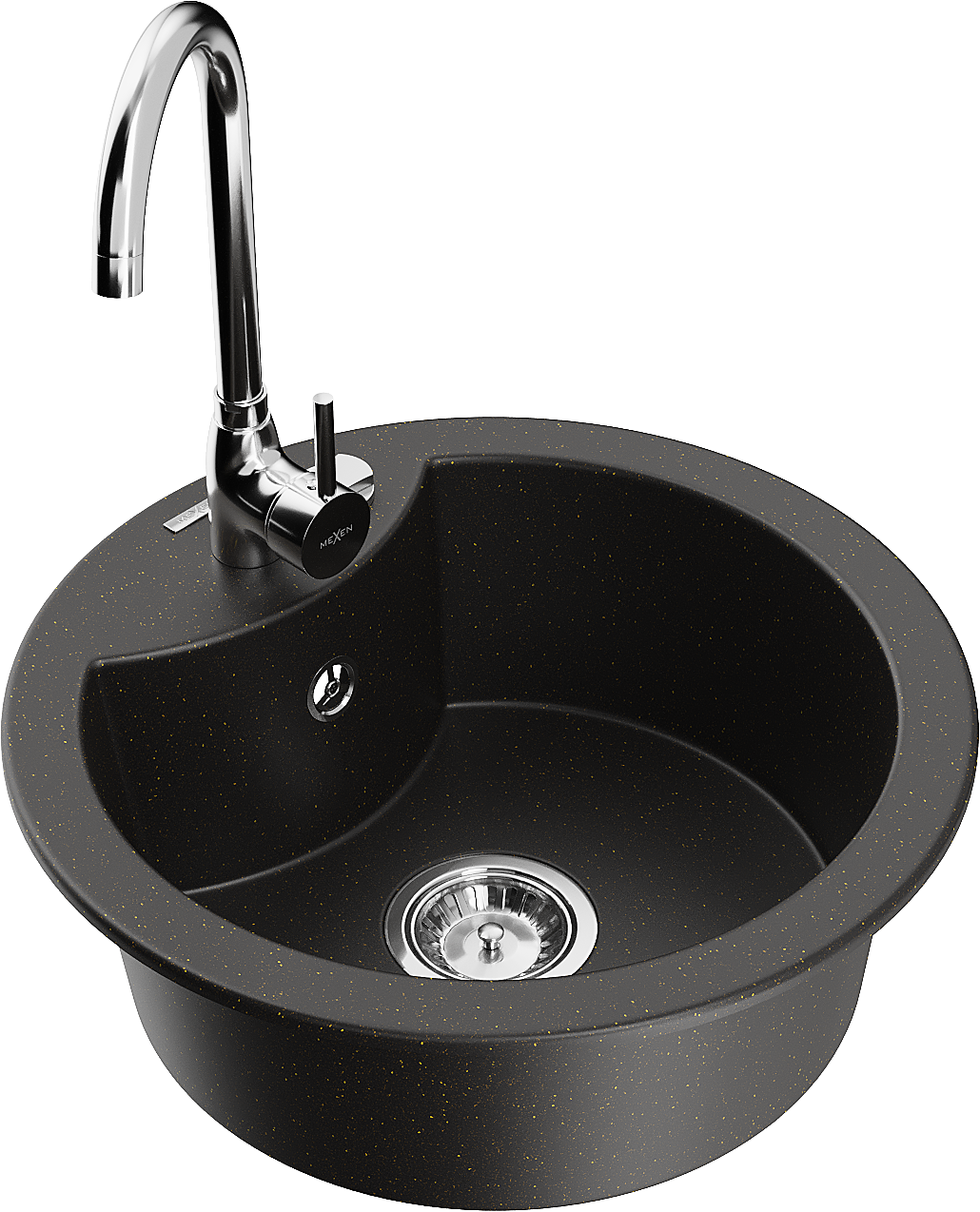 Mexen Diego гранитна мивка с 1 отделение и кухненски смесител Telma, черен/златен - 6512-75-670200-00