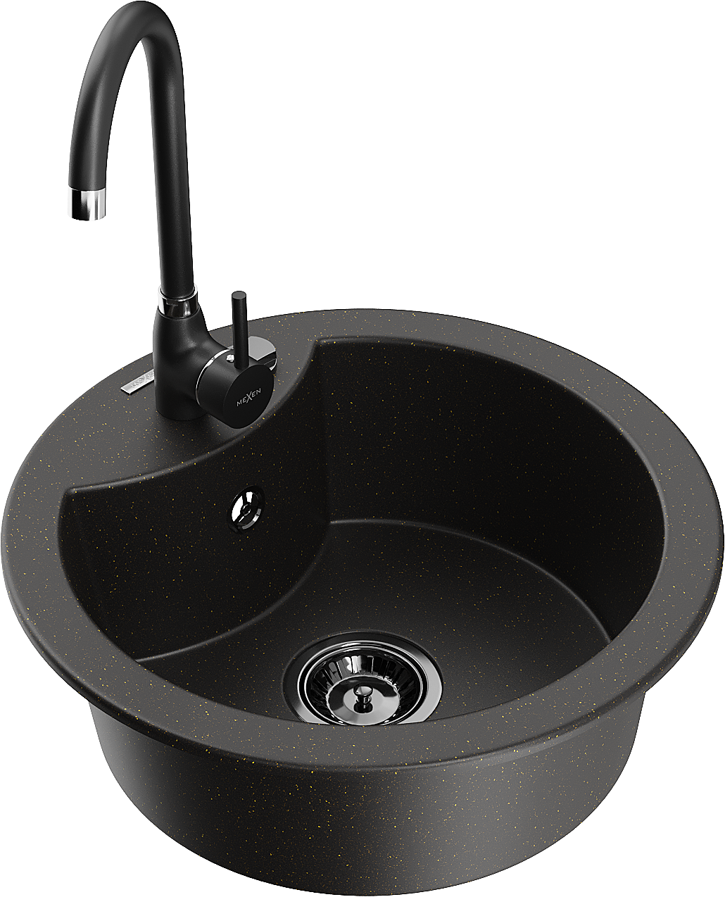 Mexen Diego мивка от гранит с 1 камера и кухненски смесител Telma, черно/златно - 6512-75-670200-70-B